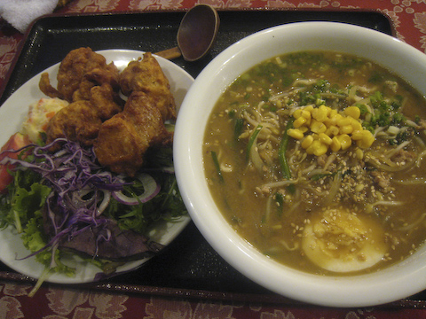 味噌ラーメンとから揚げを注文。