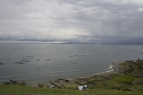 ティティカカ湖を眺めながら、