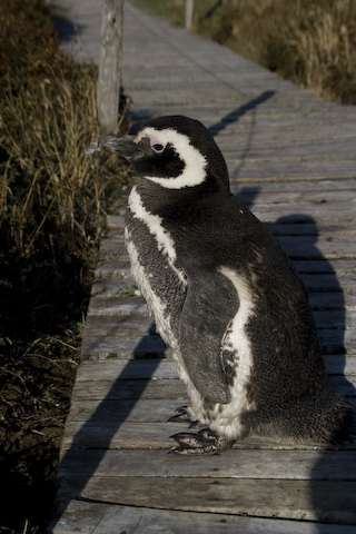 遊歩道上にペンギンが一匹。
