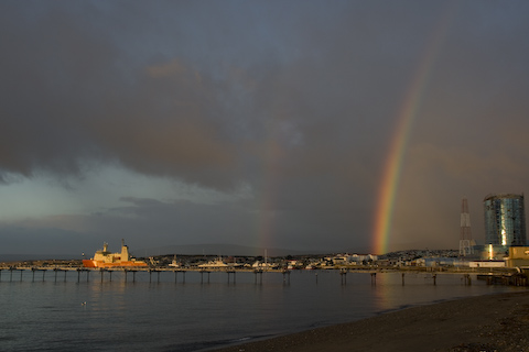 ちなみに後ろの海はマゼラン海峡ではなく、