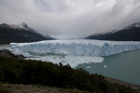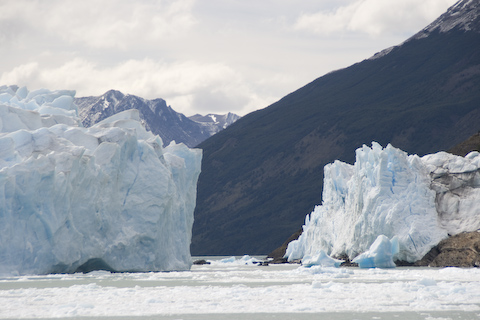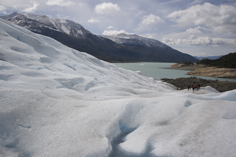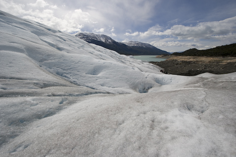 高い場所からみると、延々に山の置くまで氷河が続いているのが見えます。