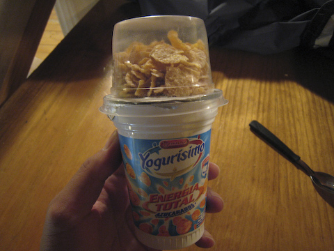 今日の朝食はヨーグルトにフレーク。