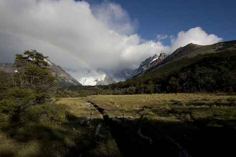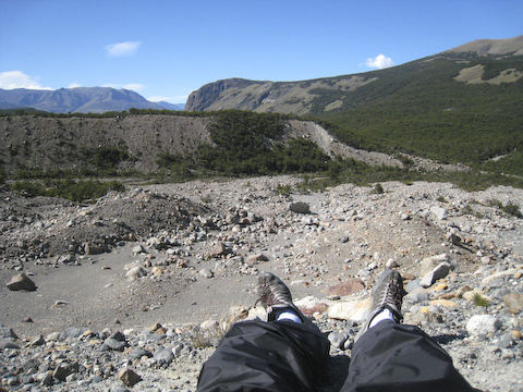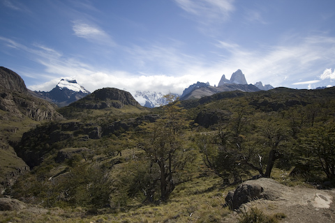 後ろに見える白い山は、昨日見たフィッツロイの一部。