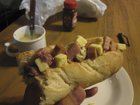 昨日スーパーで買ったハムとチーズがサイコロ状ではいってる