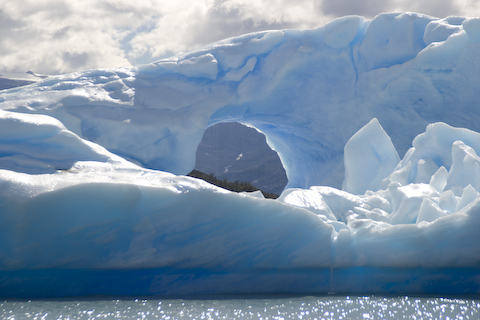 氷山の真ん中に綺麗に穴があいています。
