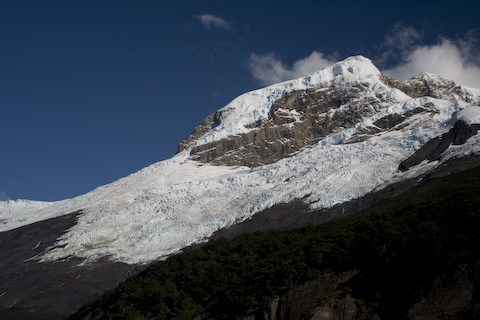 山の中腹が氷河になっています。