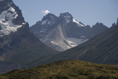 パイネの角とパイネグランドの間にすごい尖った山が。