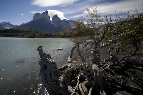 ノルデンフェールド湖の湖畔に降りることができました。あまりの素晴らしい景色の連続に少し日帰りで来たことを後悔しました。パイネ国立公園はトレッキングルートがあり、山小屋やテントをはれる場所がいくつかあります。