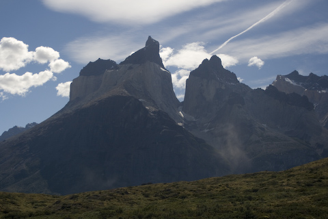 地殻変動とマグマの影響で、このような奇怪な山になったようです。パイネ山群の裏側は太平洋側のようで、地図で確認すると50kmも西へ行けば出られるようです。もちろん険しい地形なのでそんな道はないですが。
