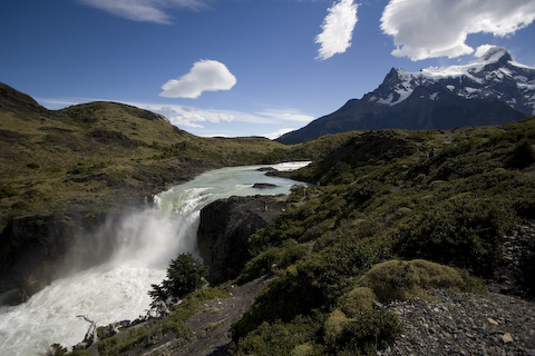 ノルデンフェールド湖からペオエ湖へ流れ出るサルトグランデ。