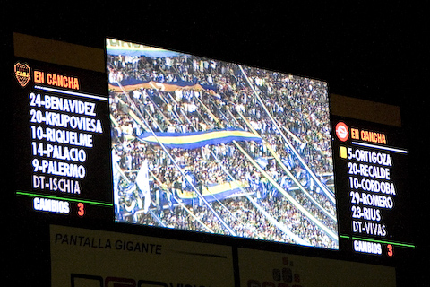 ホームのボカ側のゴールエンドはかなり盛り上がってます。