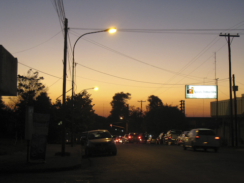 イグアスの街が夕暮れに染まります。