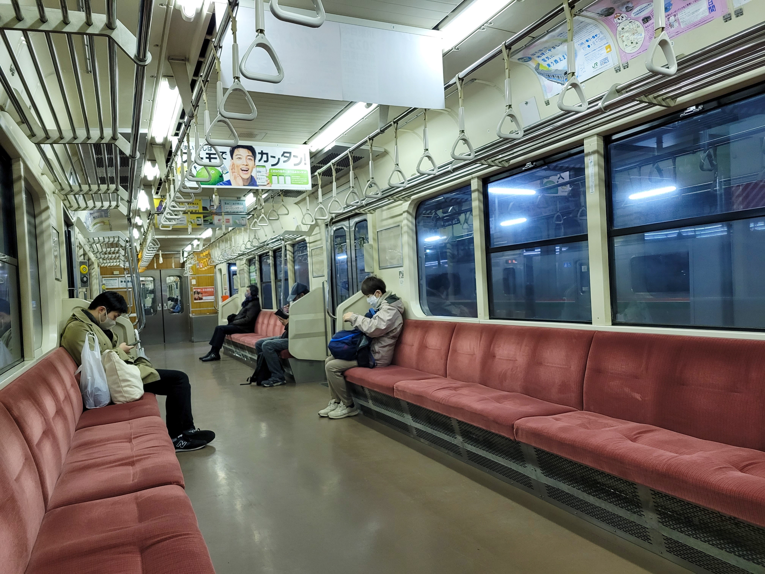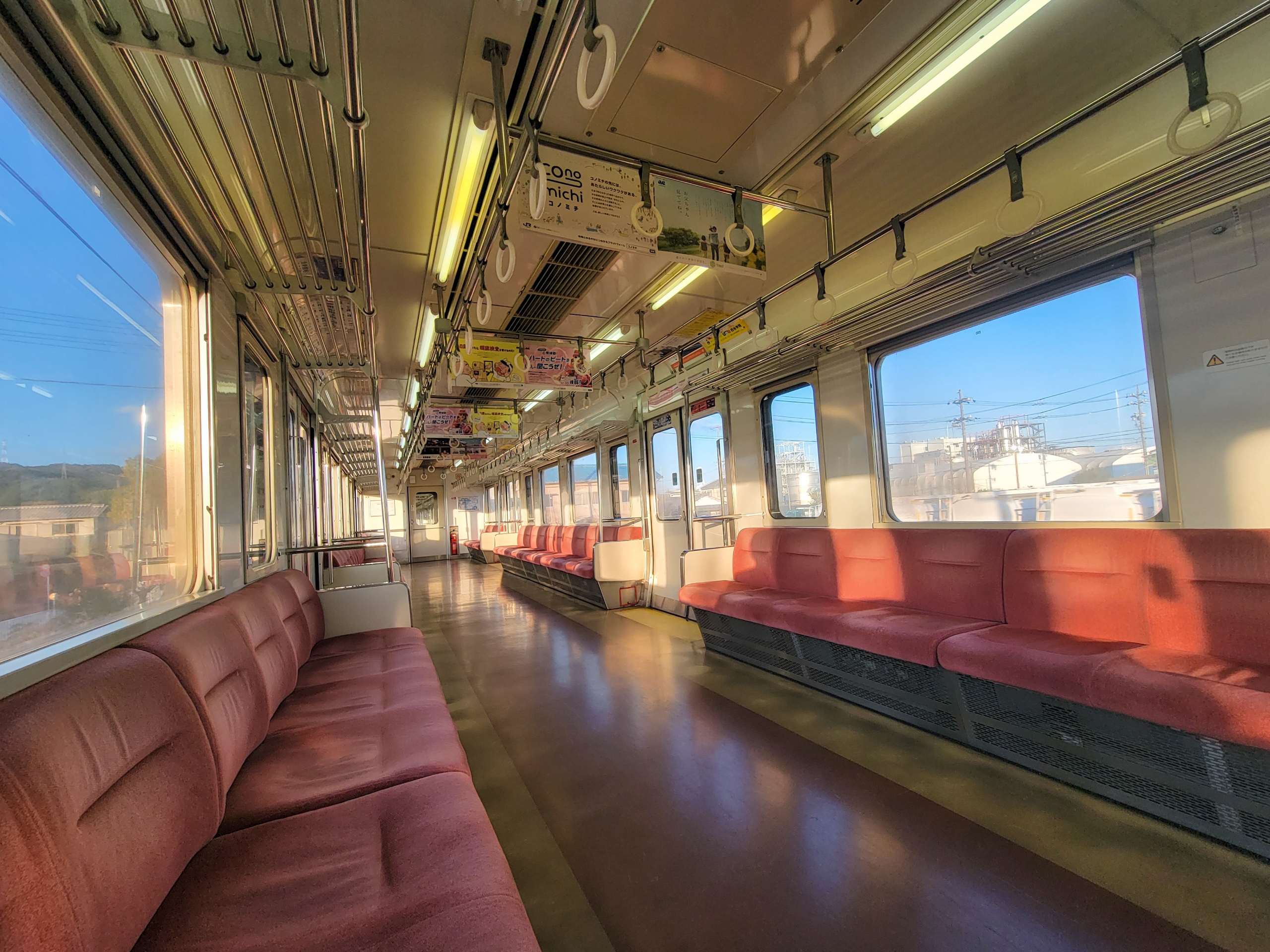 前回は一部ボックスシートがありましたが、今回はすべてロングシートでした。