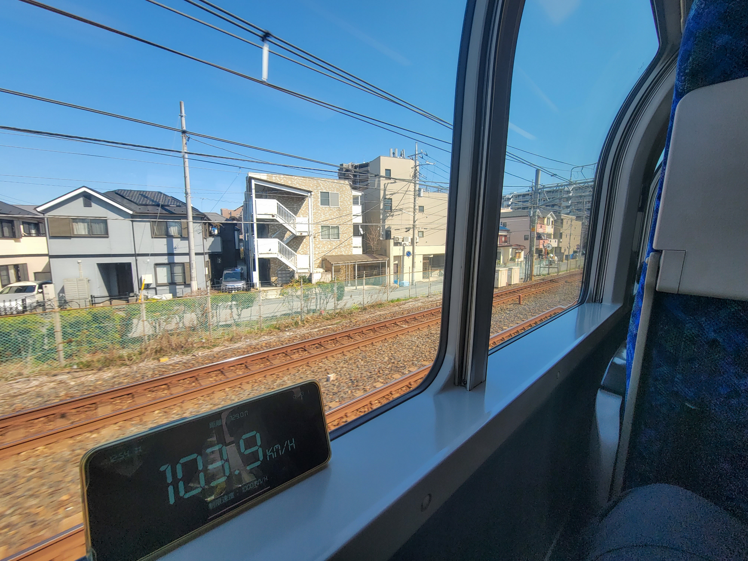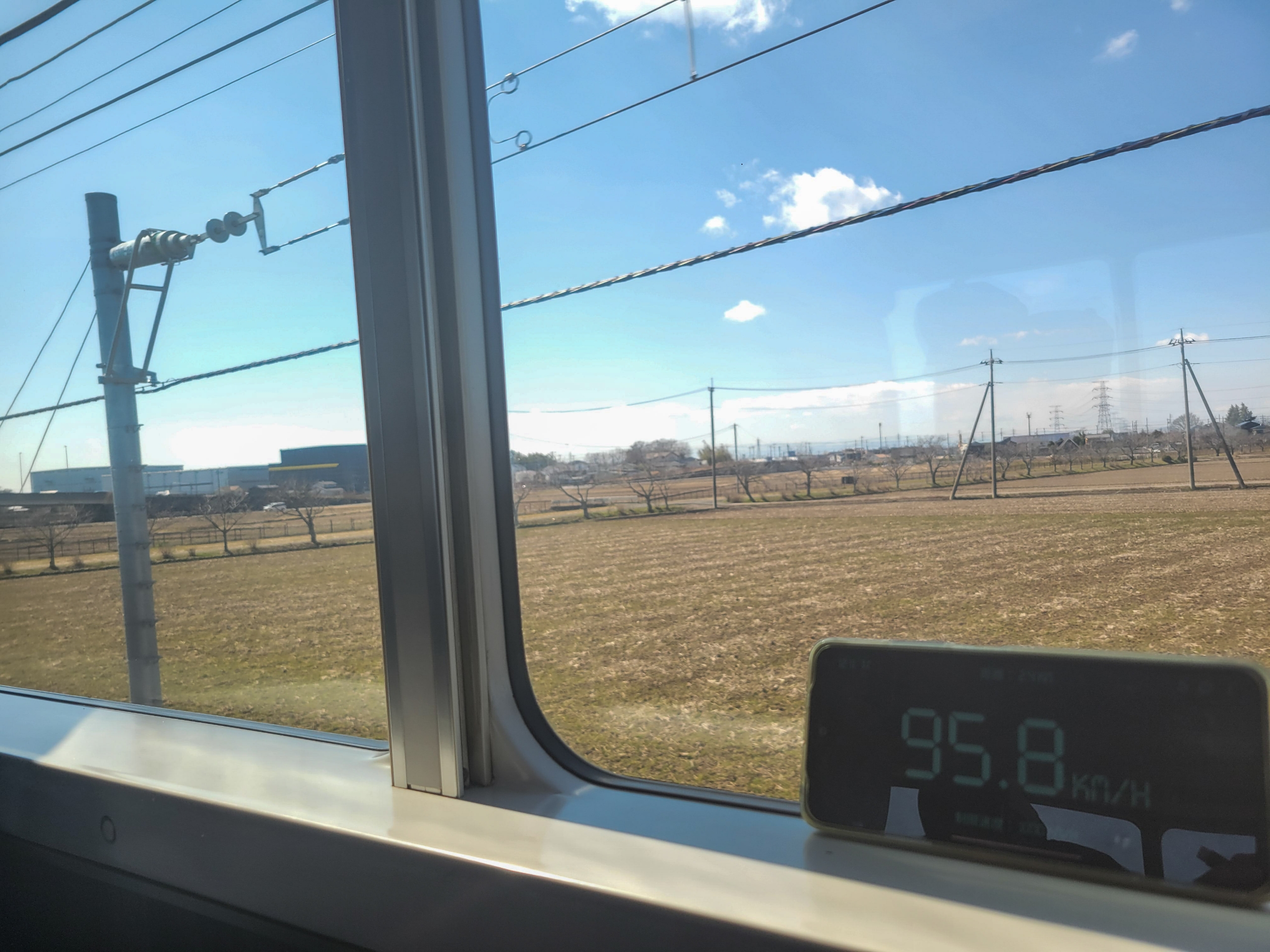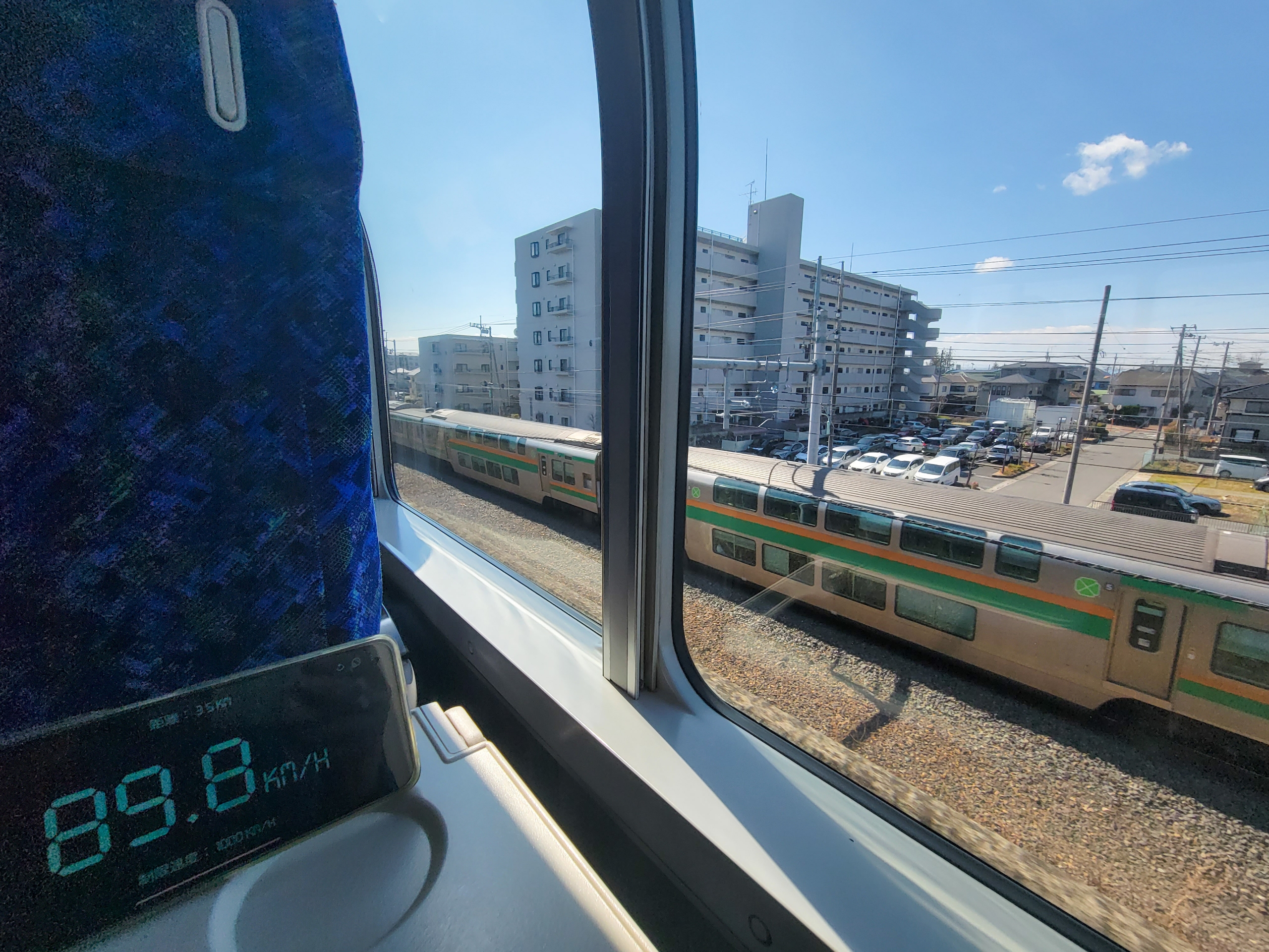 大宮を過ぎてようやくスピードがあがってきた感じですが、110km/hが最高のようです。