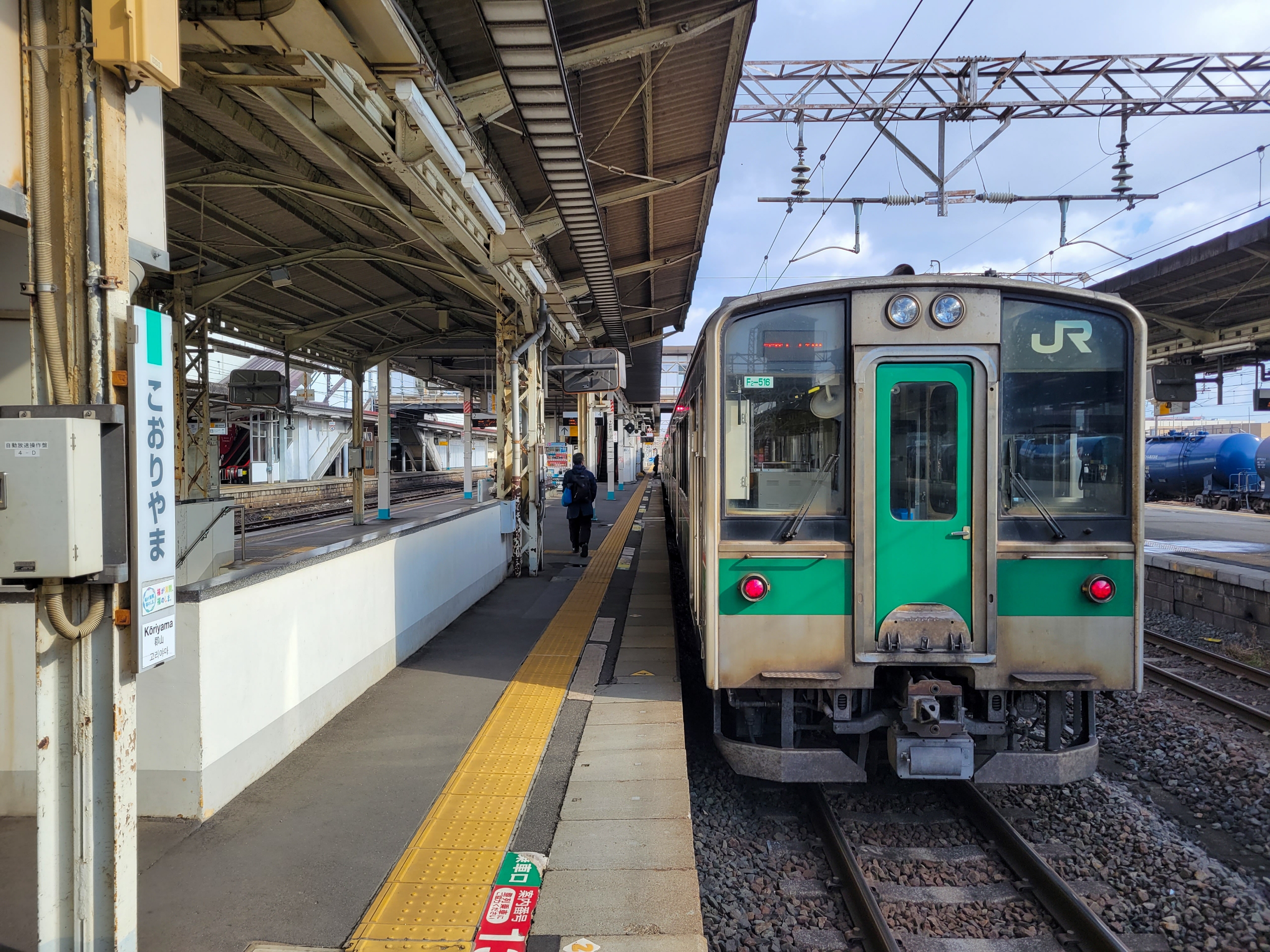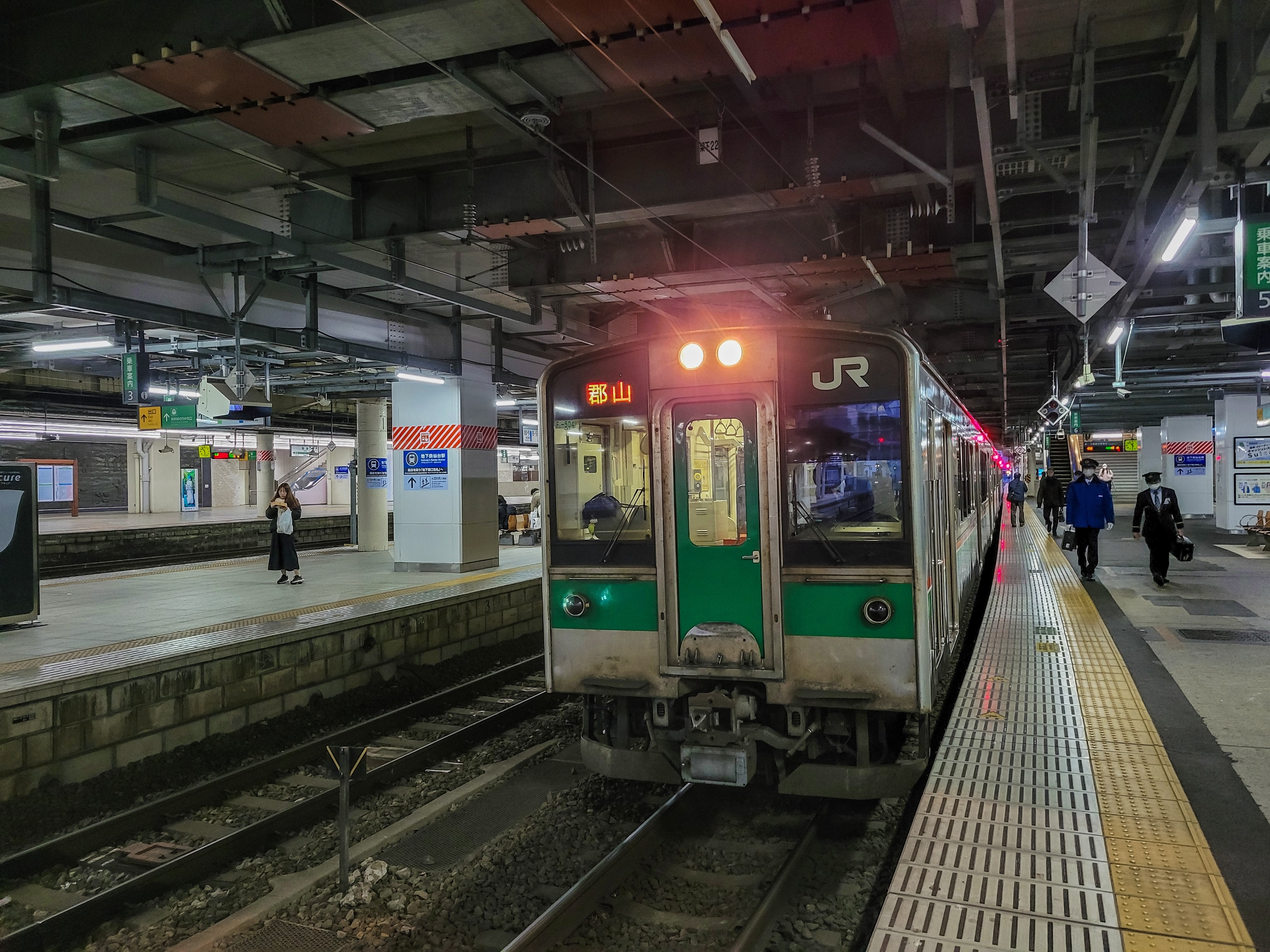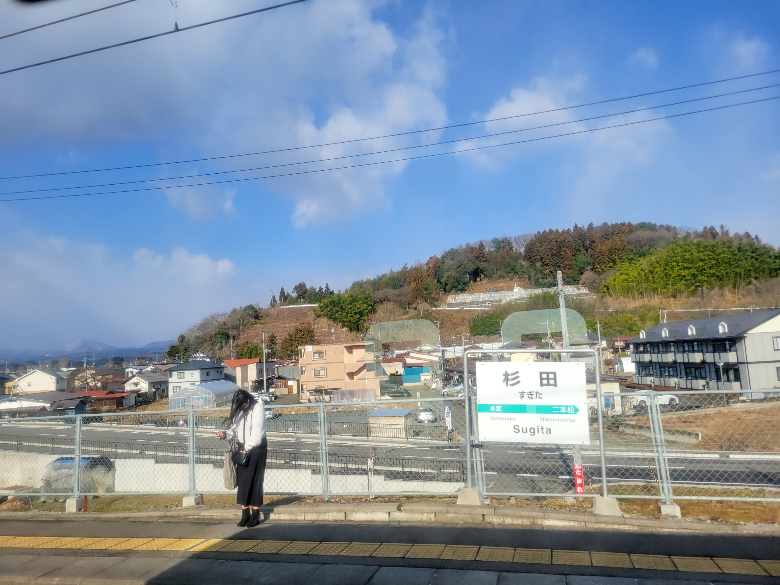 仙台から郡山駅まで直通するのは1日2本だけ。日中だと白石駅、福島駅と2買い乗り換えが必要。