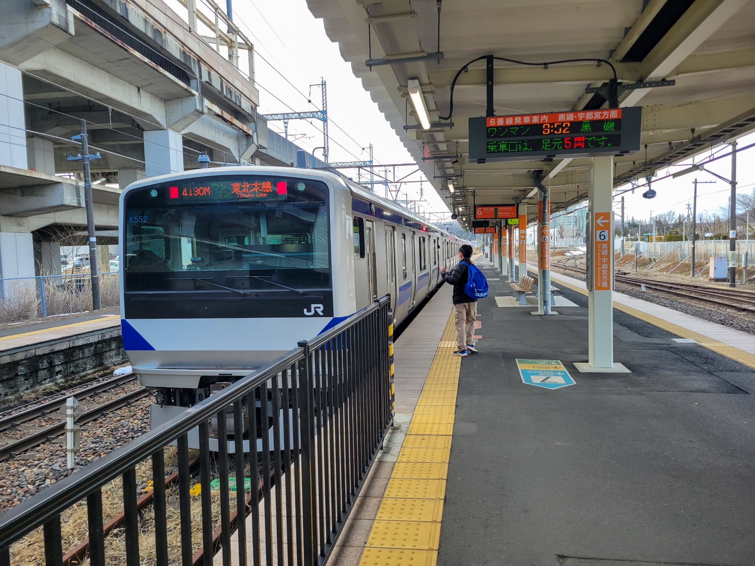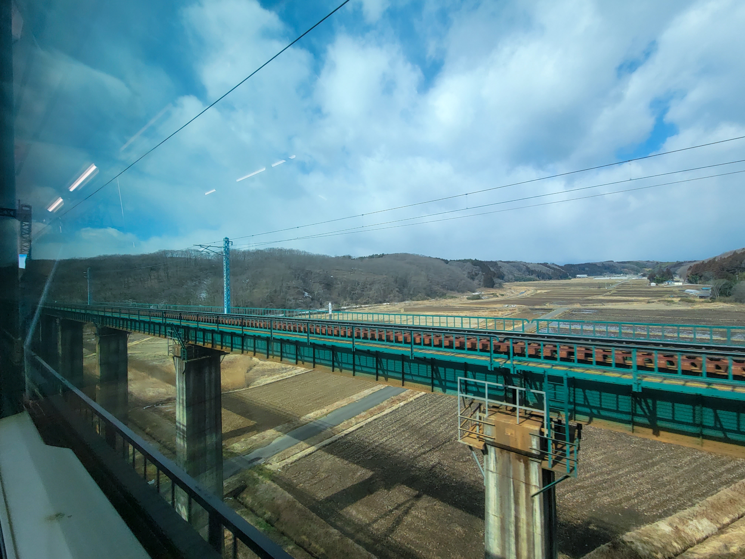常磐線で帰りたかったのですが、高架橋区間もあって、風の影響を受けそうなので、東北本線で帰ることにしました。一昨日に何度も東北新幹線乗ってるから、景色はあんまり変わらないけど、帰るためには安全策をとります。