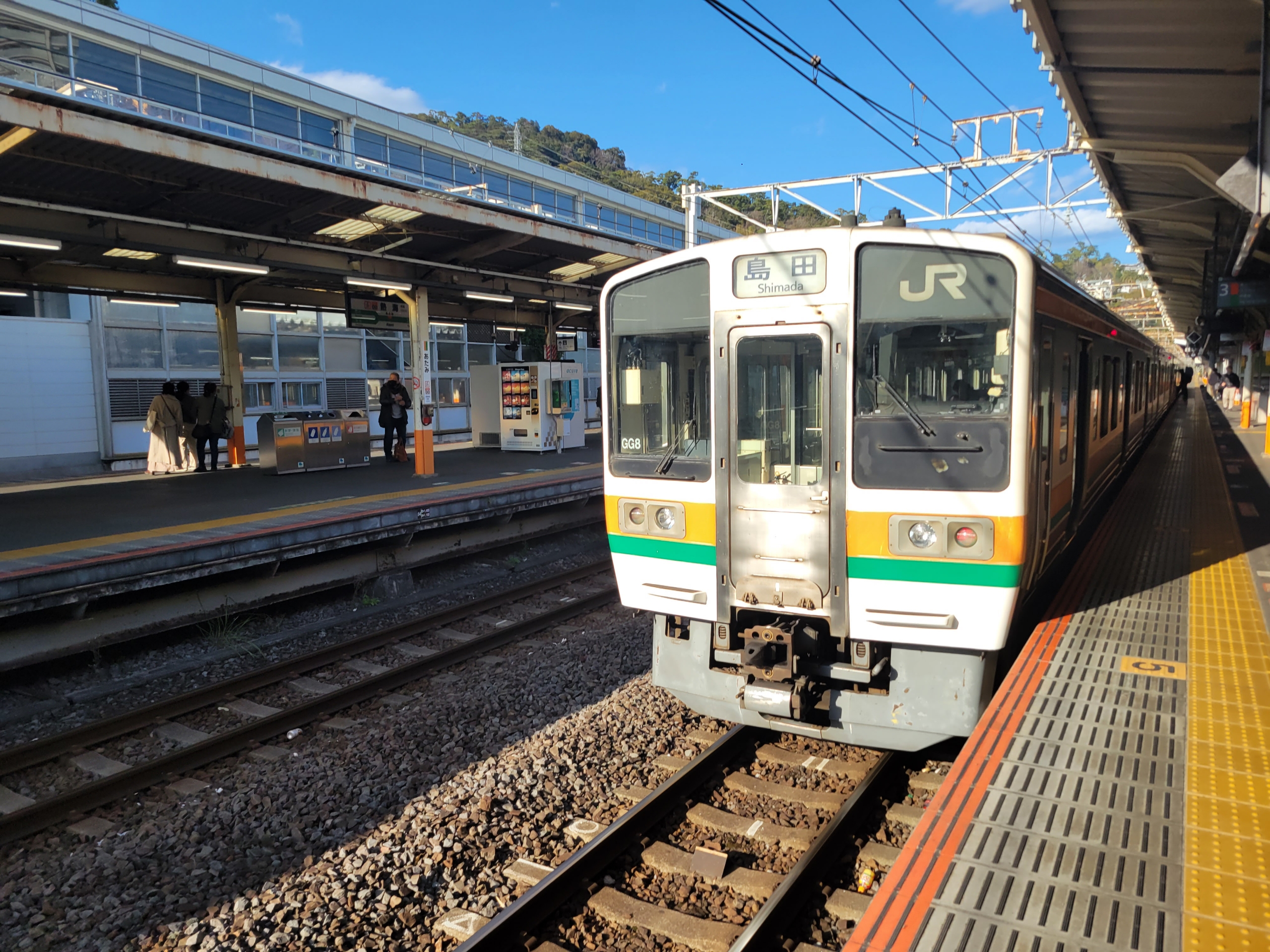 熱海駅で乗り換え。島田行きなので、長距離移動の人は少ないだろうから余裕かと思ってたら、座席はすぐに埋まりました。