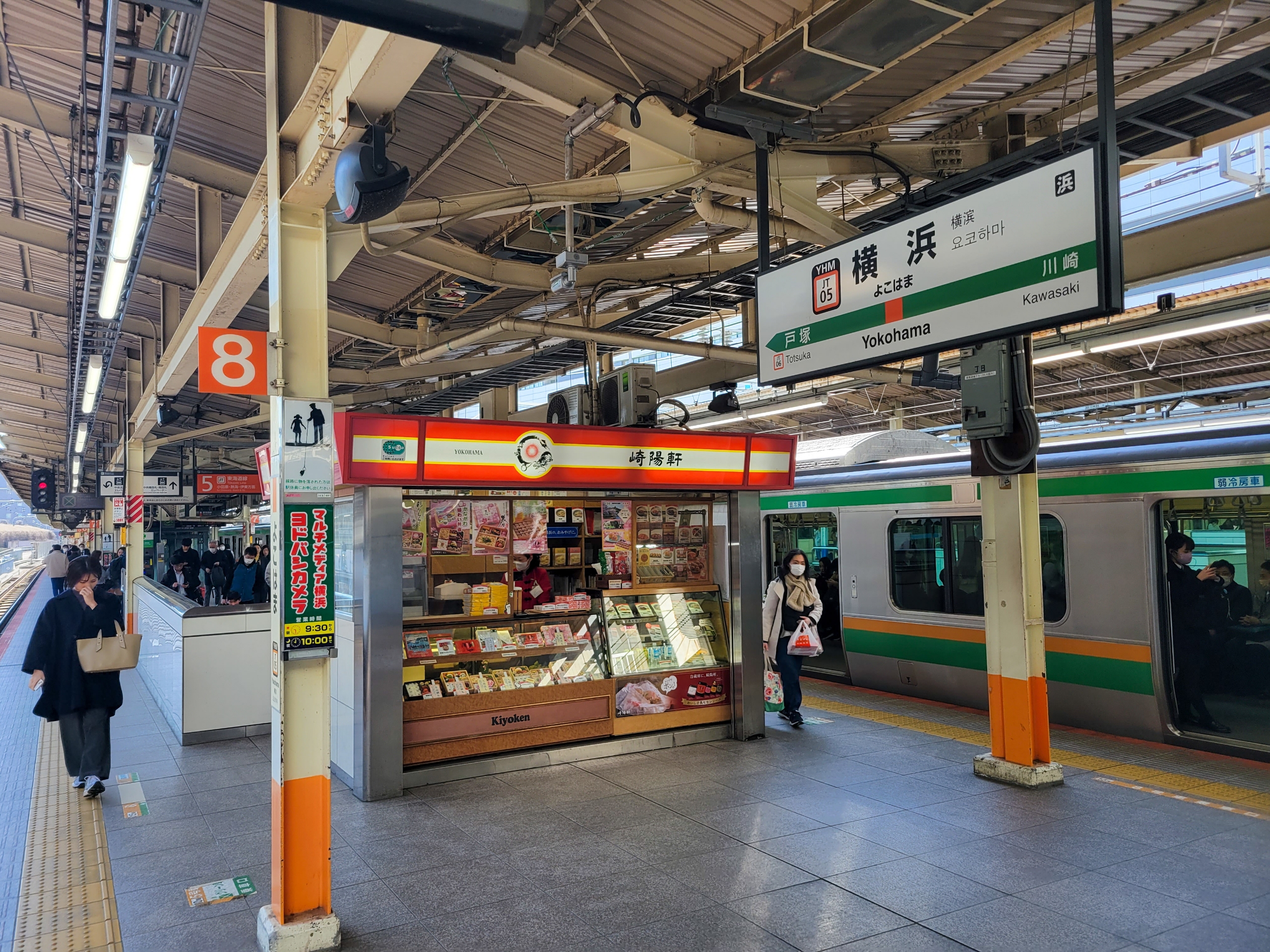 平塚行きなので、横浜駅で乗り換えついでに、お昼ごはん食べます。改札でない同方向の乗り換えであれば、グリーン券は引き続き利用できるので、車内で崎陽軒のシュウマイ弁当でも良かったかな。