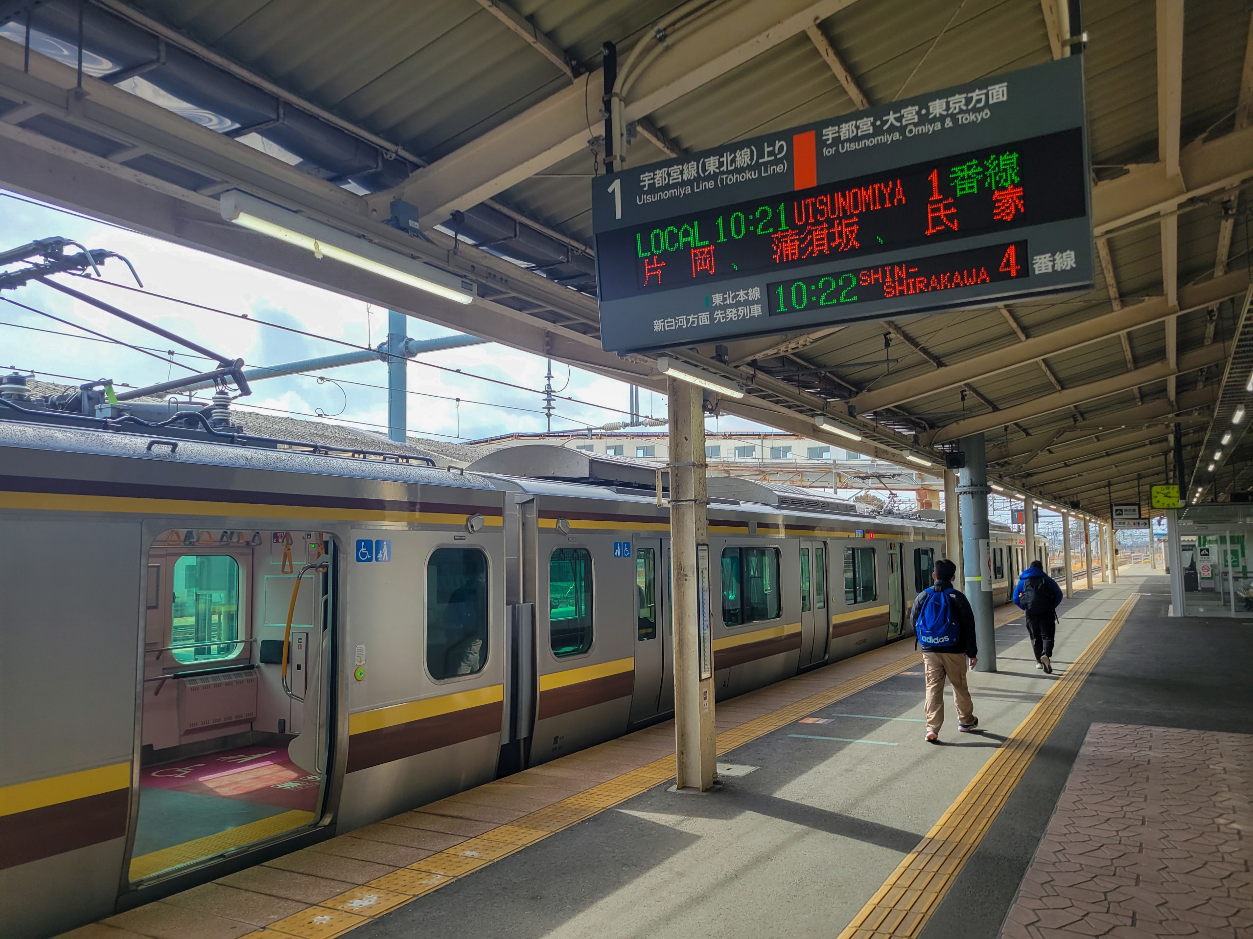 大宮駅で数分停車。湘南新宿ライン方面とホーム乗り換えできるように設定されてるのかな。JR東日本は速度は遅いがとことん利便性にこだわっている気がする。