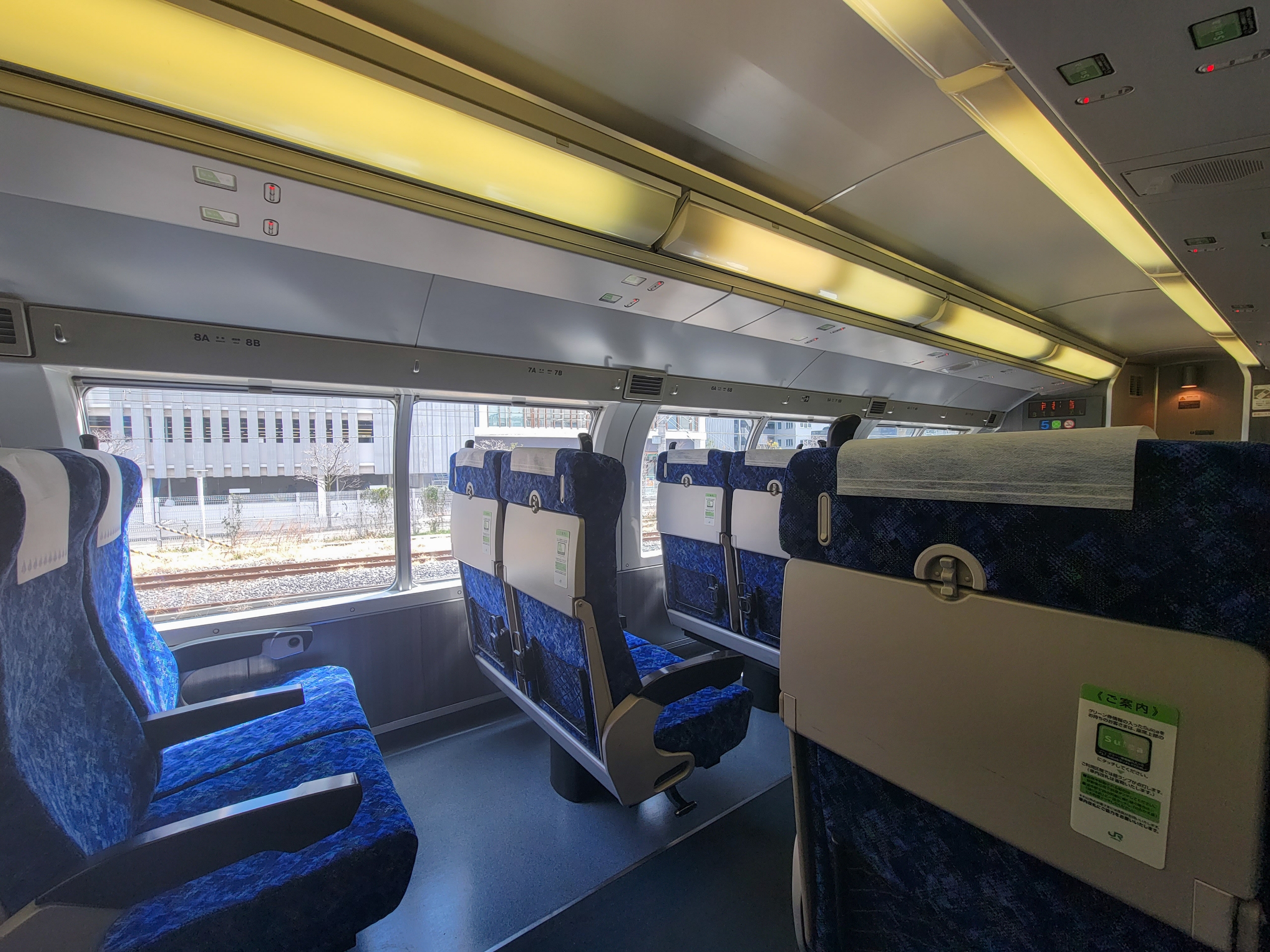 座席も窓も広いし、乗客も少ないから、体力回復できます。あとグリーン車って、モーターがないから静かなんですよね。とても快適です。