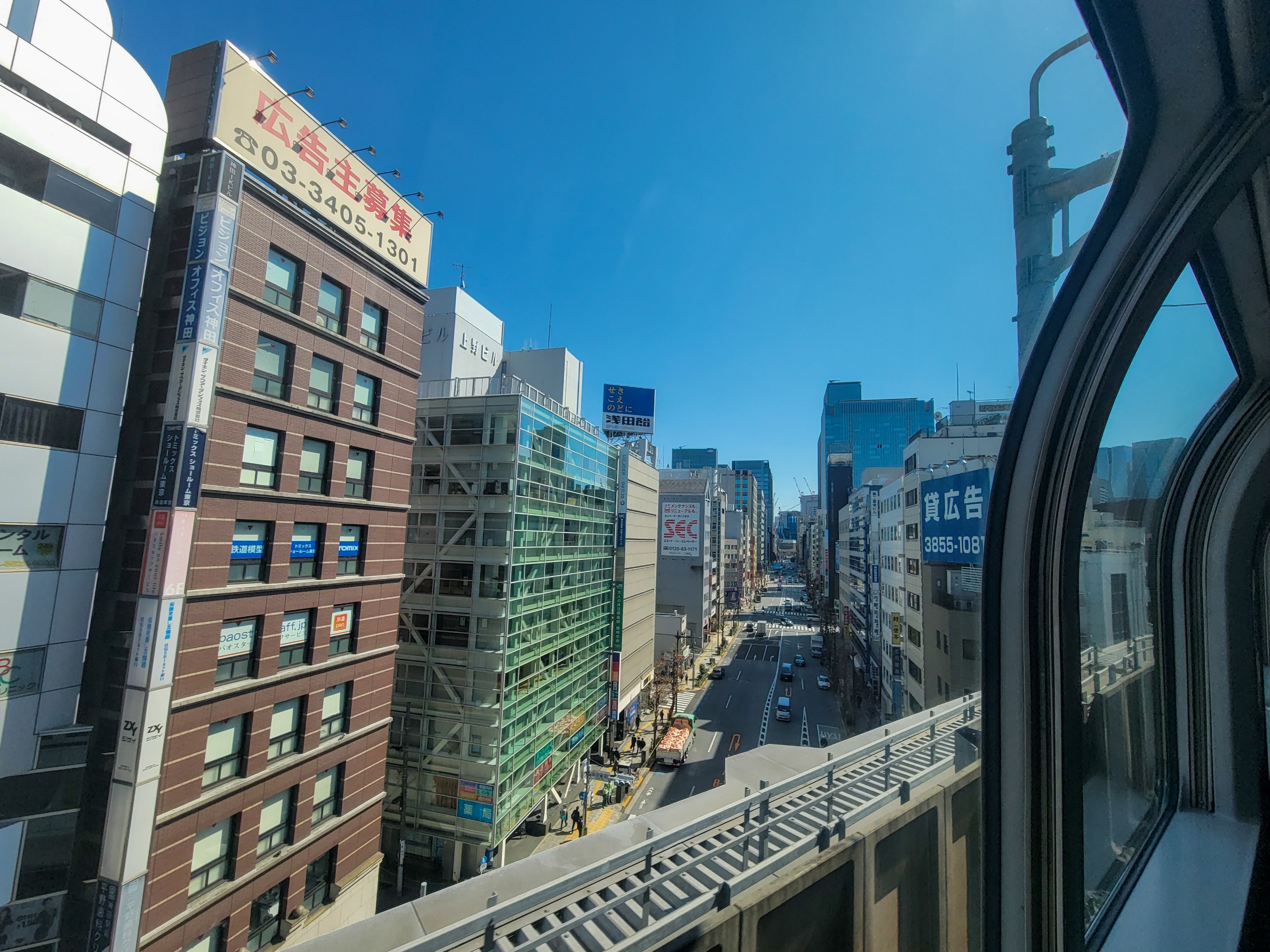 上野東京ラインは後から作ったので、新幹線よりも高い場所を越えて東京駅を目指します。高いところは走っても、周囲のビルも高いから、あんまり眺めてが良くはならないです。