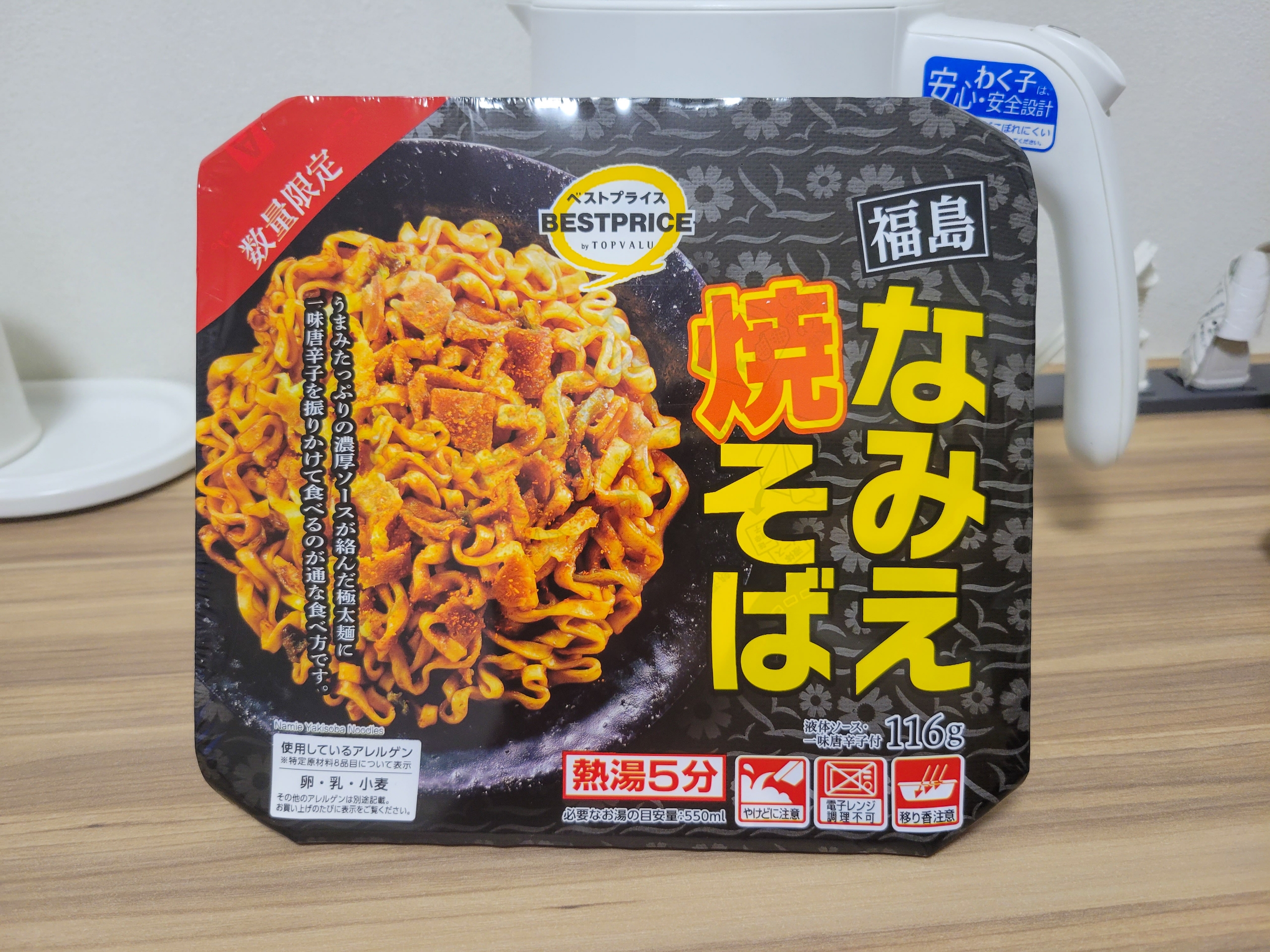 イオンの店頭でみつけた「なみえ焼きそば」。太目の平たい麺で味が濃くて美味しかった。これはまた買いたい。