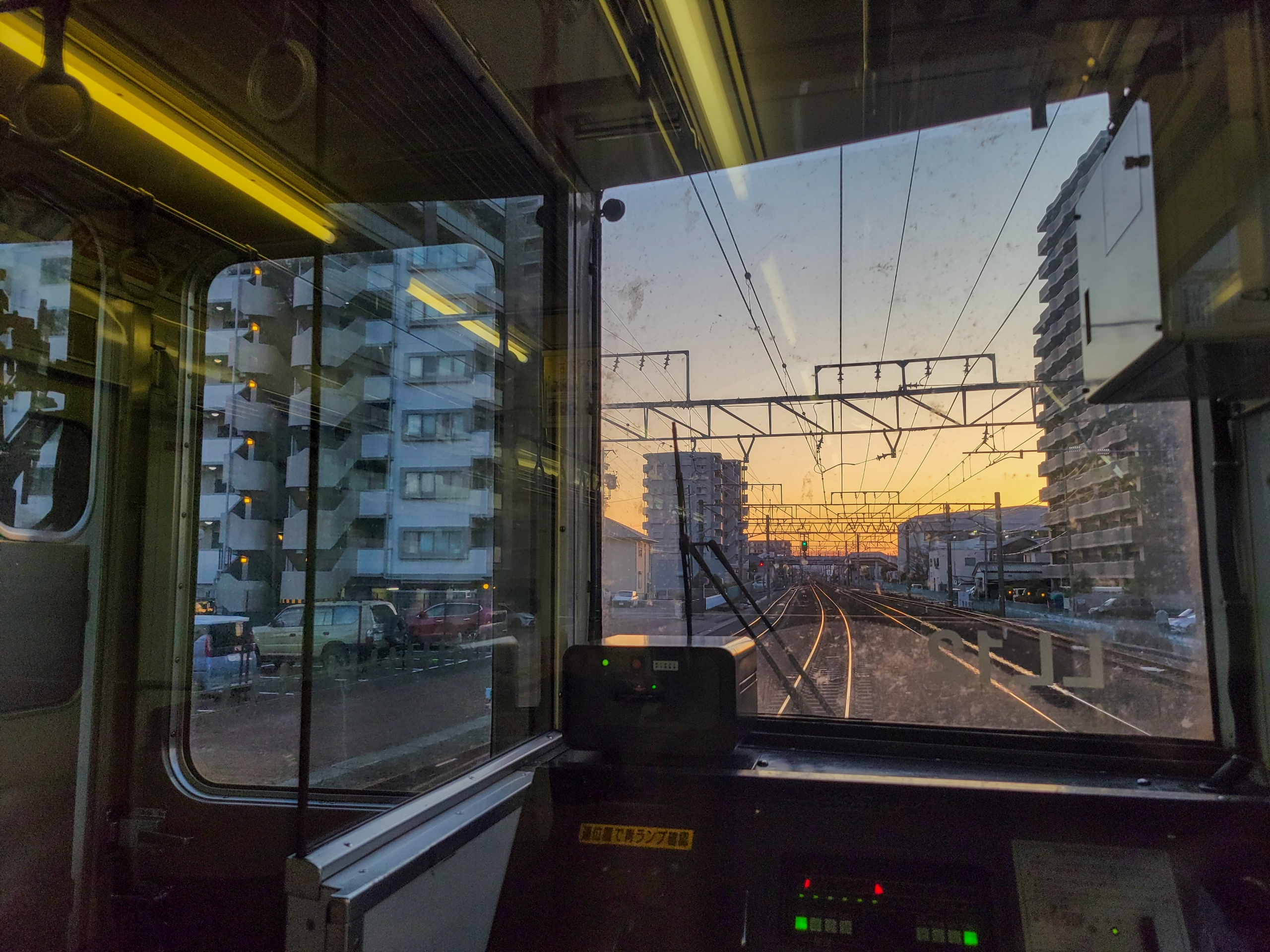 長町駅を過ぎたあたりで、太陽が上ってきました。
