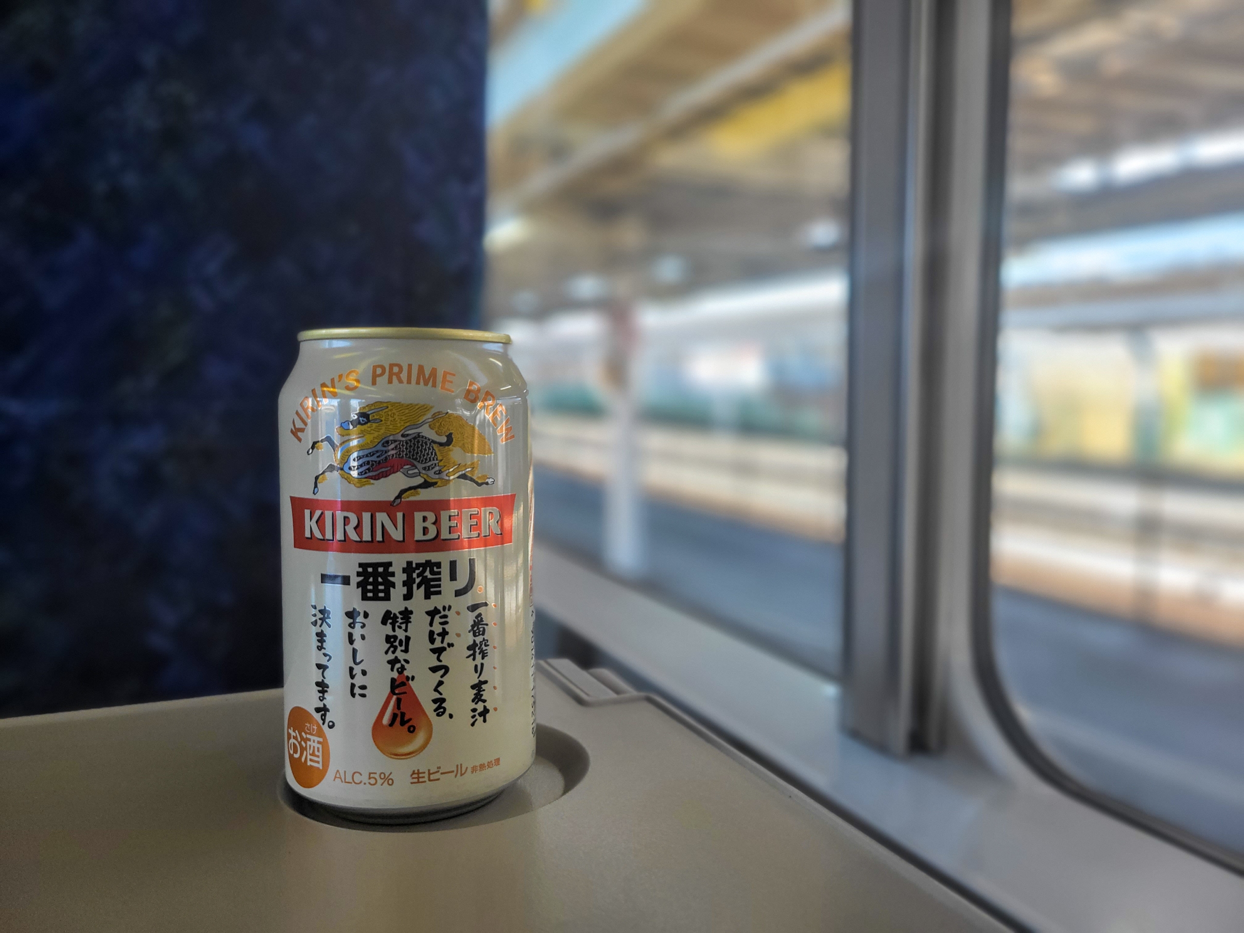 小金井駅からグリーンアテンダントさんが乗り込んでくるので、ビール購入しました。