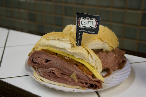 歩き方にのっていた市営市場の名物モルタデーラ。