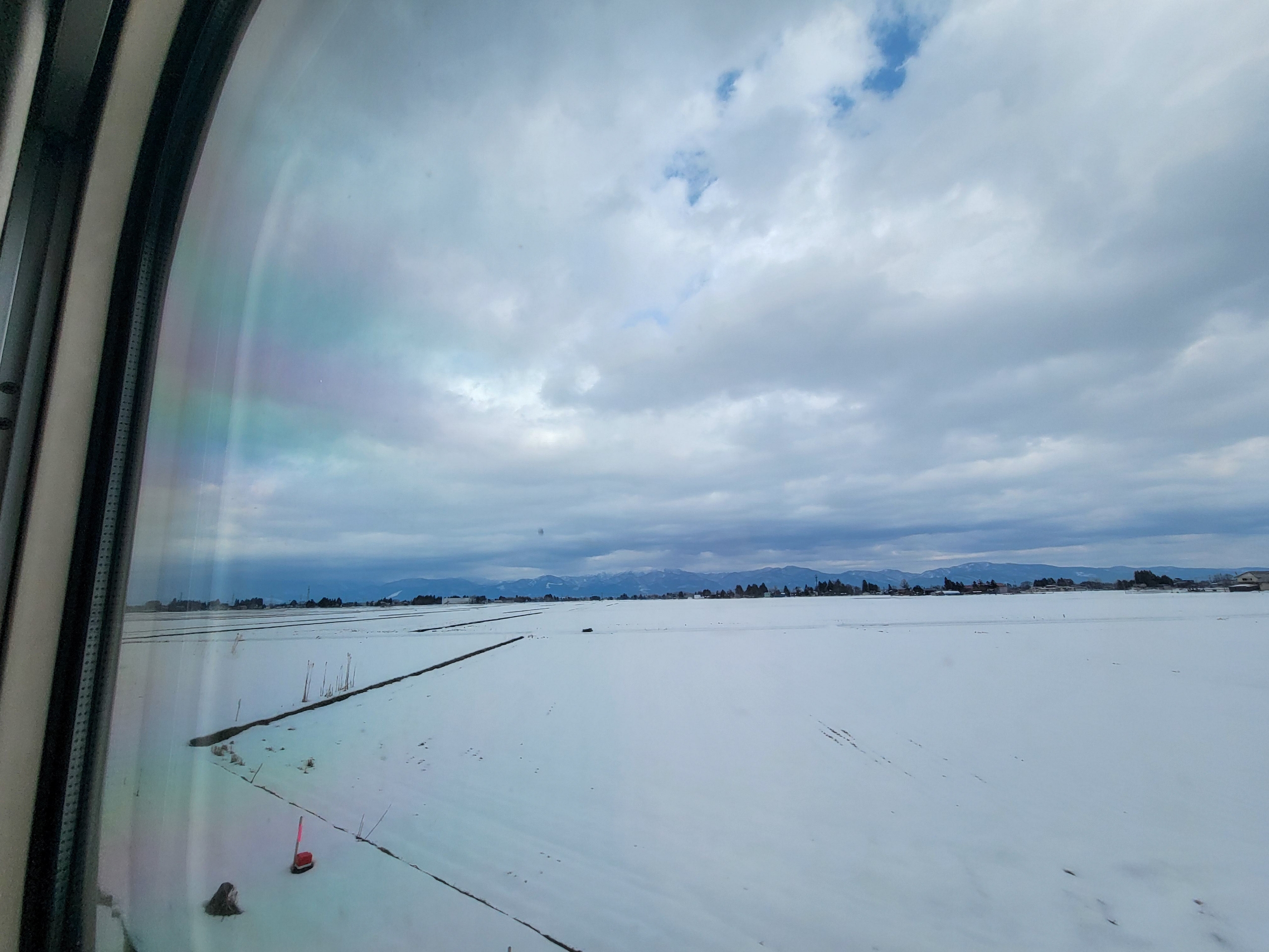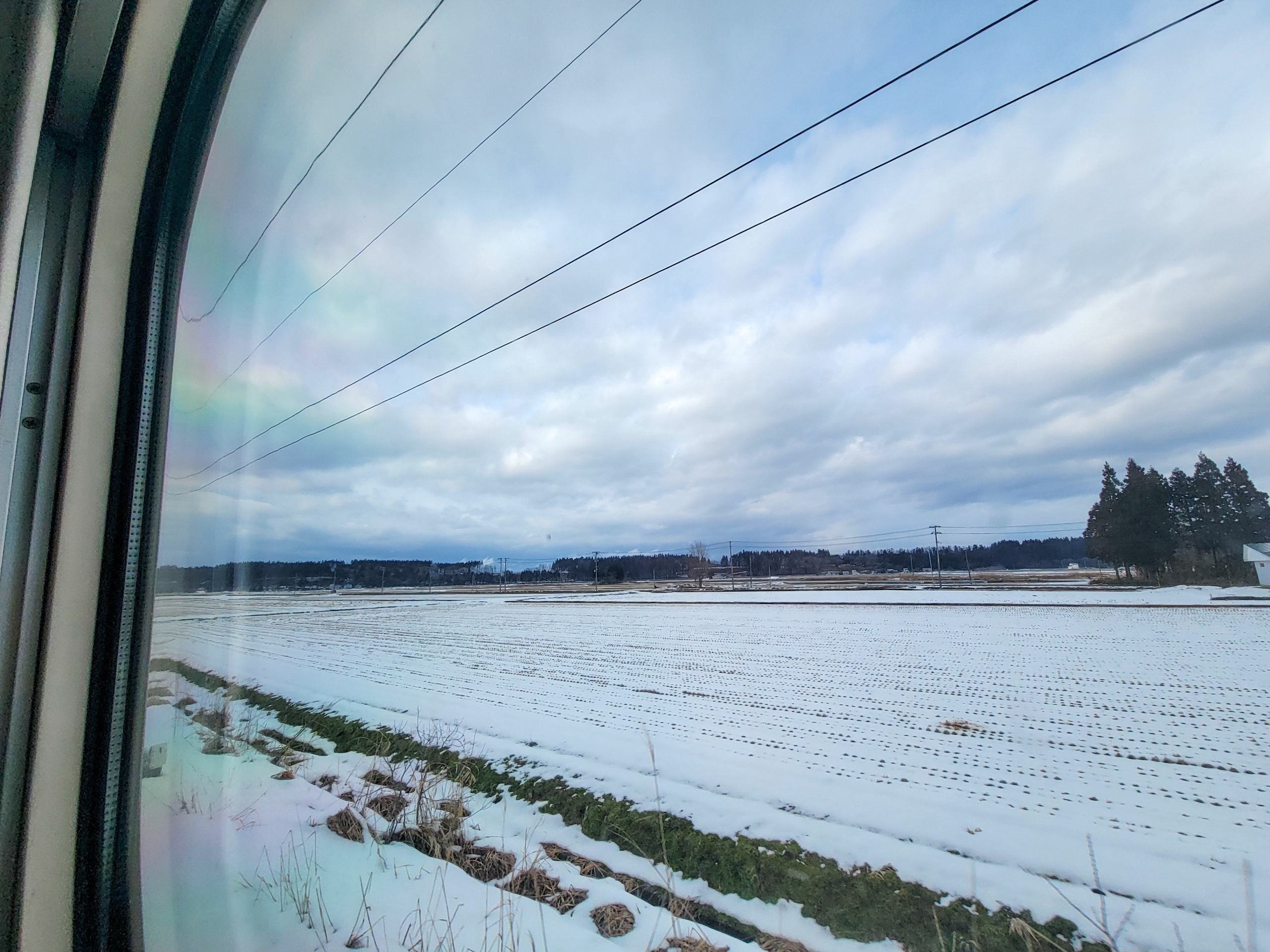 大曲駅からも乗車する人多いですね。空席だった横の座席も埋まりました。全席指定のこまち号ですが、秋田~盛岡間は指定なしでも空席があれば座ることが出来ますので、空席を探しながら座る人もいました。あとから誰か来たら気まずいから、あんまりやりたくないですね。