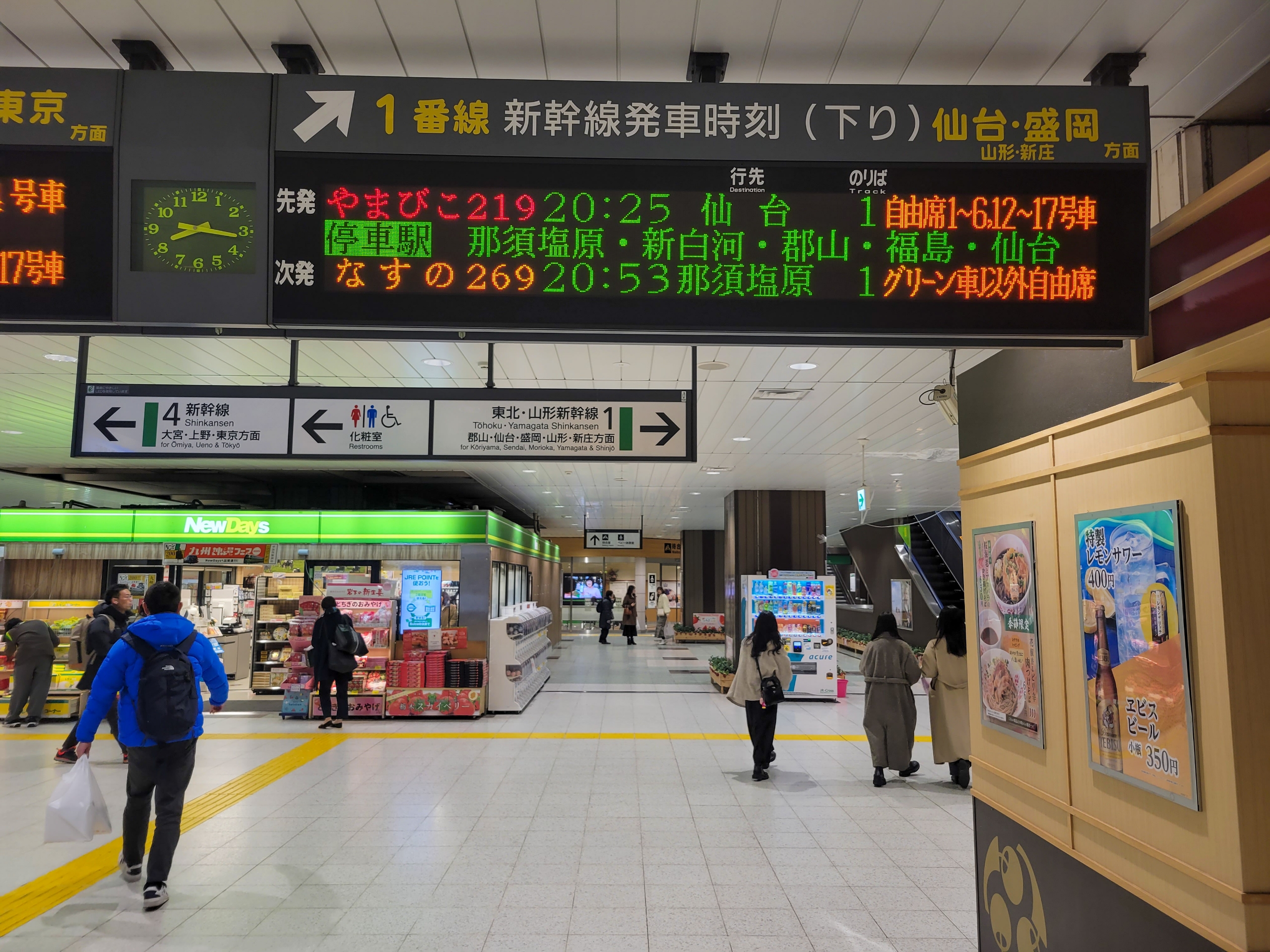 提供が早いので、予定してたより早い20時25分のやまびこ号に乗れました。次の仙台行きは間隔が空いてたので、ありがたい。実は早めの列車に乗りたくて急いで餃子を食べて口のなかを火傷して、皮がべろっと剥けてます…