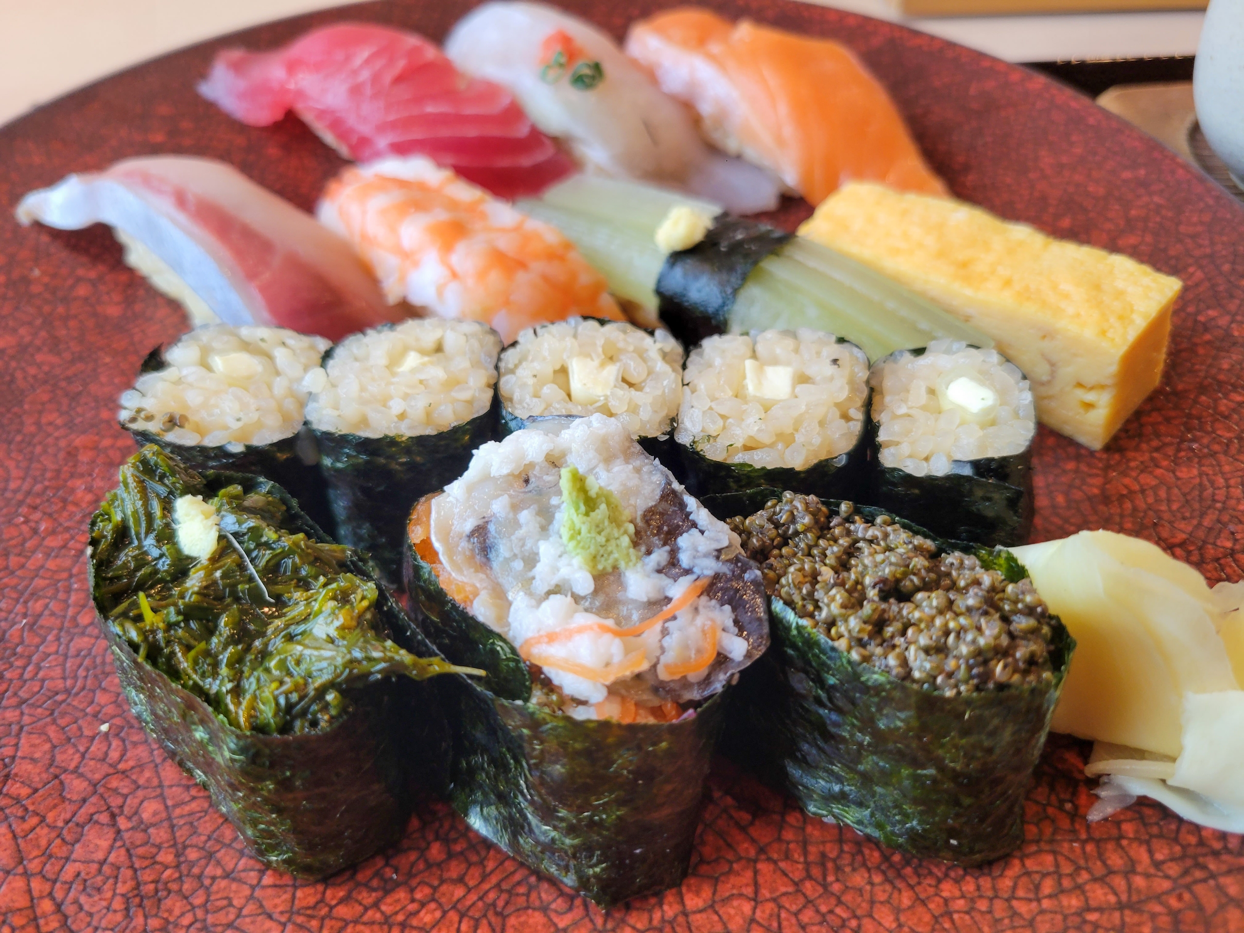 ハタハタ寿司はハタハタを米と麹で仕込んだ慣れ寿司。それを巻物にするとなると、米で米を食べるとなりますが、美味しかった。