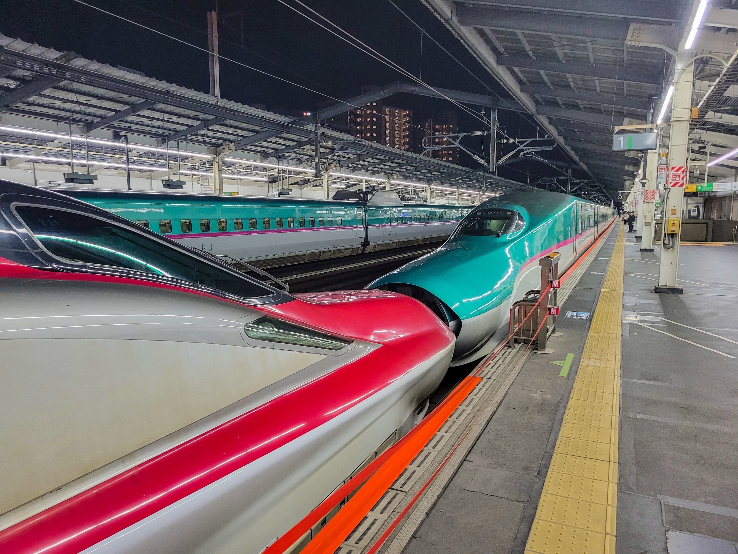 乗車するはやぶさはE6とE5のコンビでした。通過待ちのために出発の7分ほど前に入線してきました。