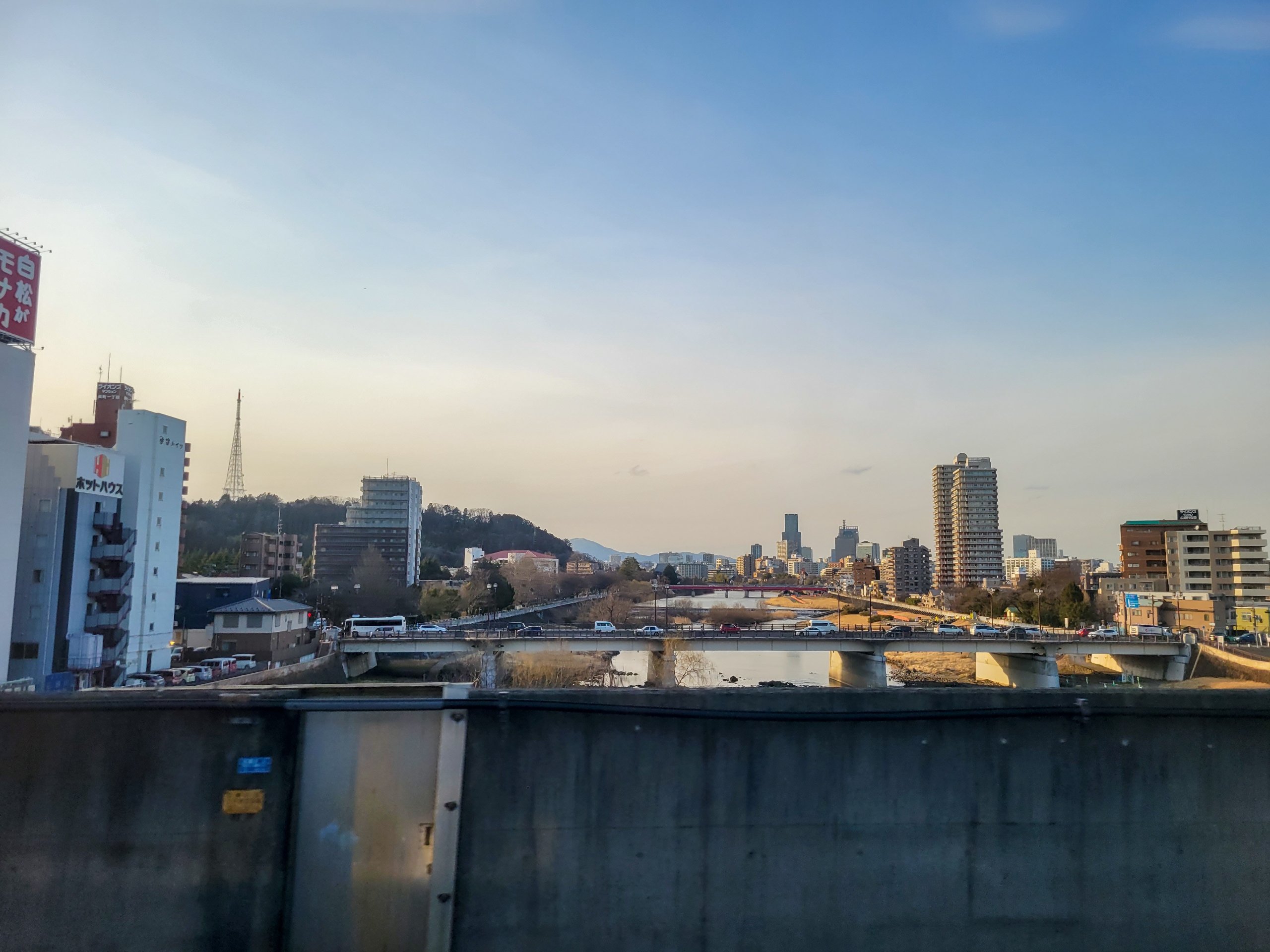 仙台市の真ん中を広瀬川。しばらく走っても高いビルが続く仙台はほかの東北の都市とレベル違いの大都市。