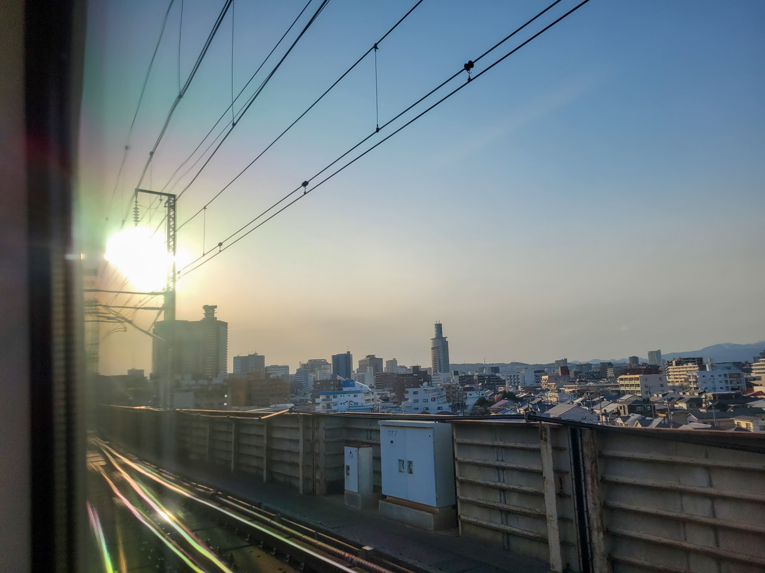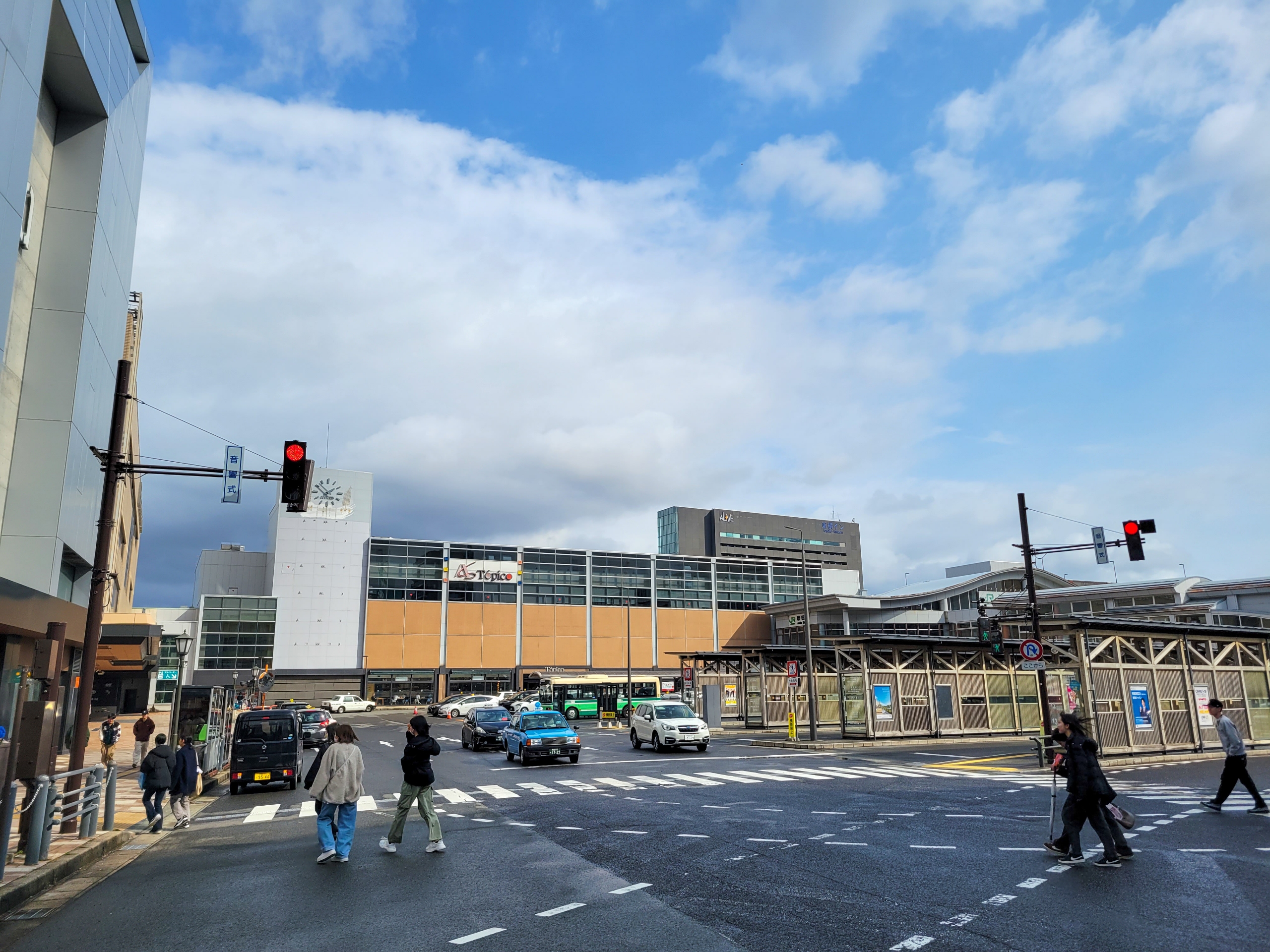 少し酔っぱらいそうなので、外の空気を吸いに駅周辺を散策。さっきまで雨だったのに、青空が広がってます。冬の日本海側の天気は変わりやすいですからね。