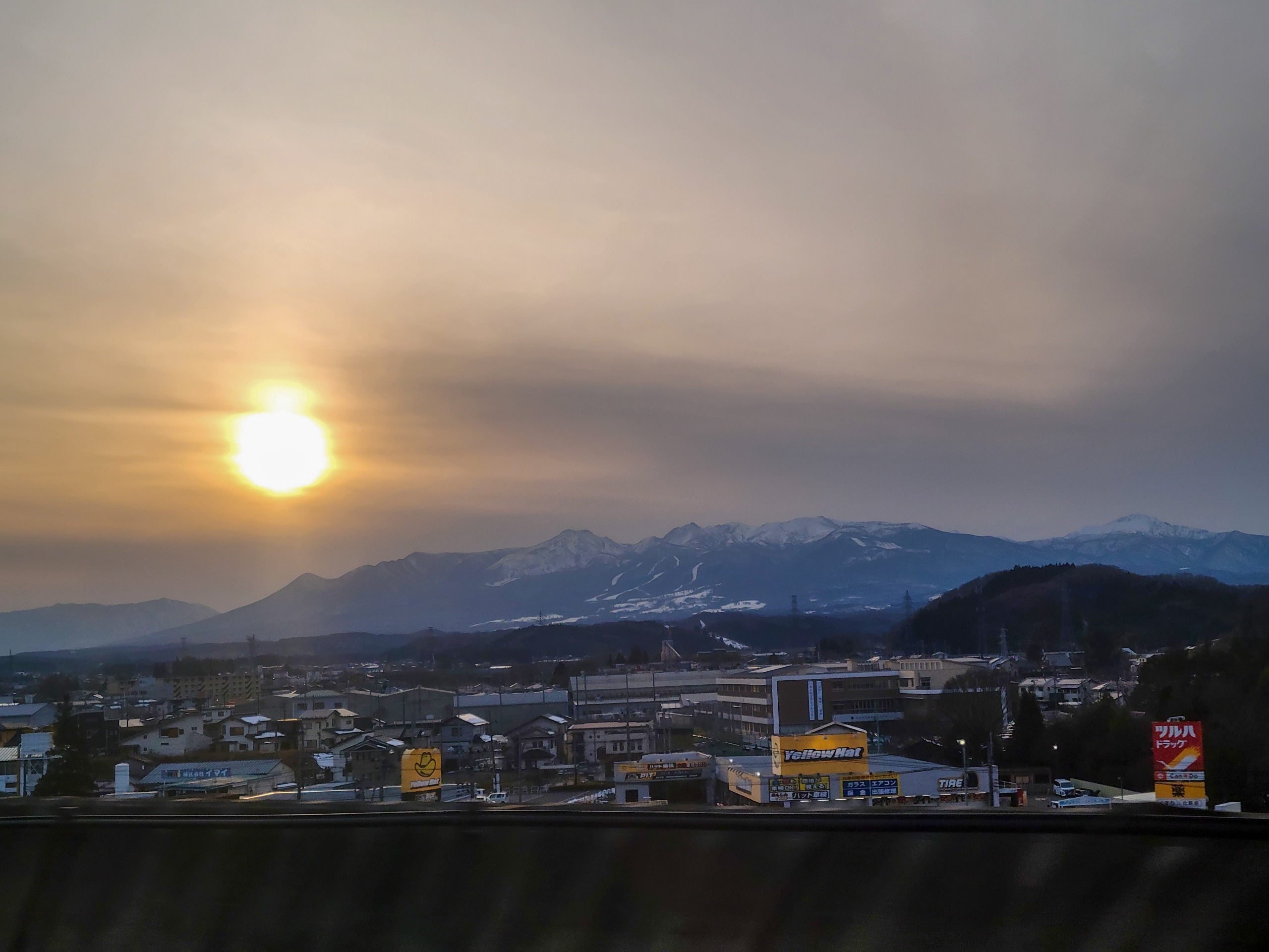 最後まで夕陽を見るのは厳しいようです。福島市西側にある吾妻連峰です。