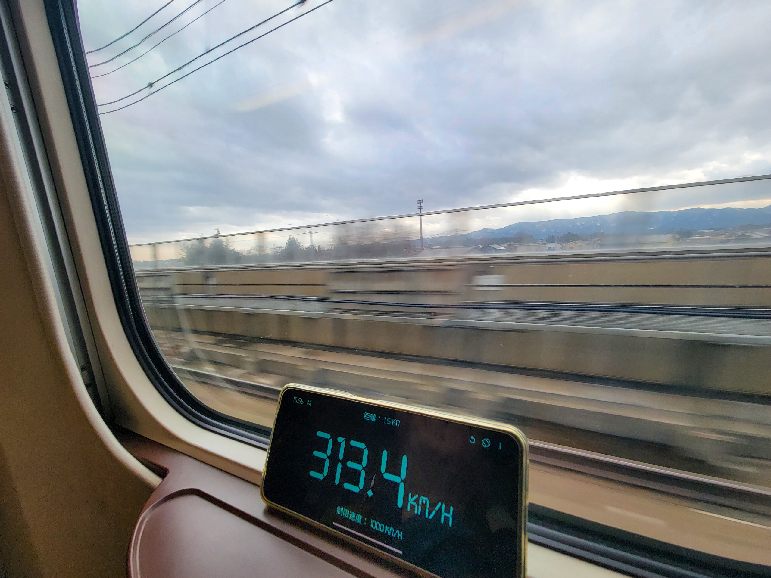 宇都宮からは275km/h制限。320km/hに慣れた後だとこれが遅く感じる…慣れって怖い。