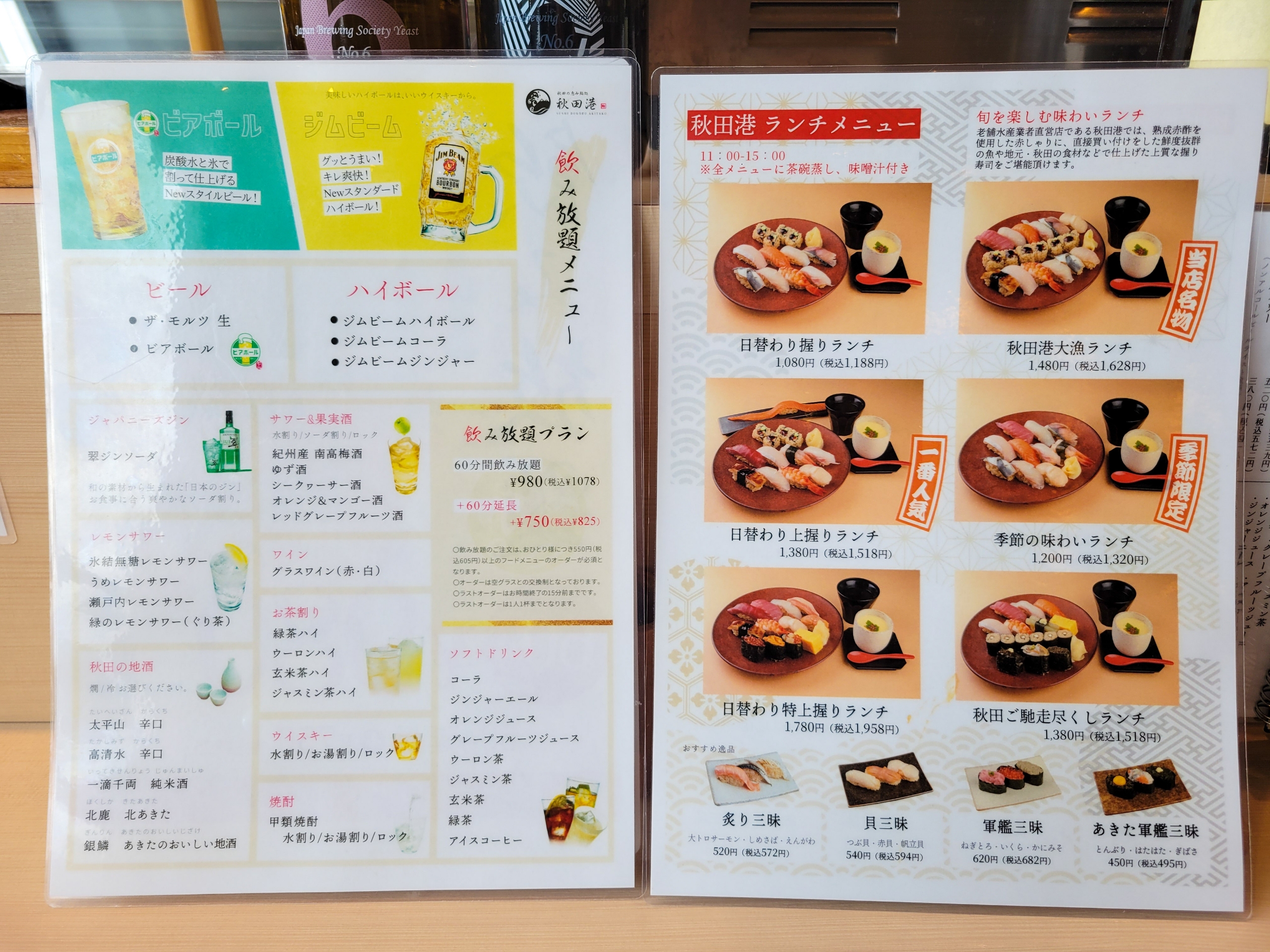 駅ビル三階の秋田港というお寿司屋さんに入りました。