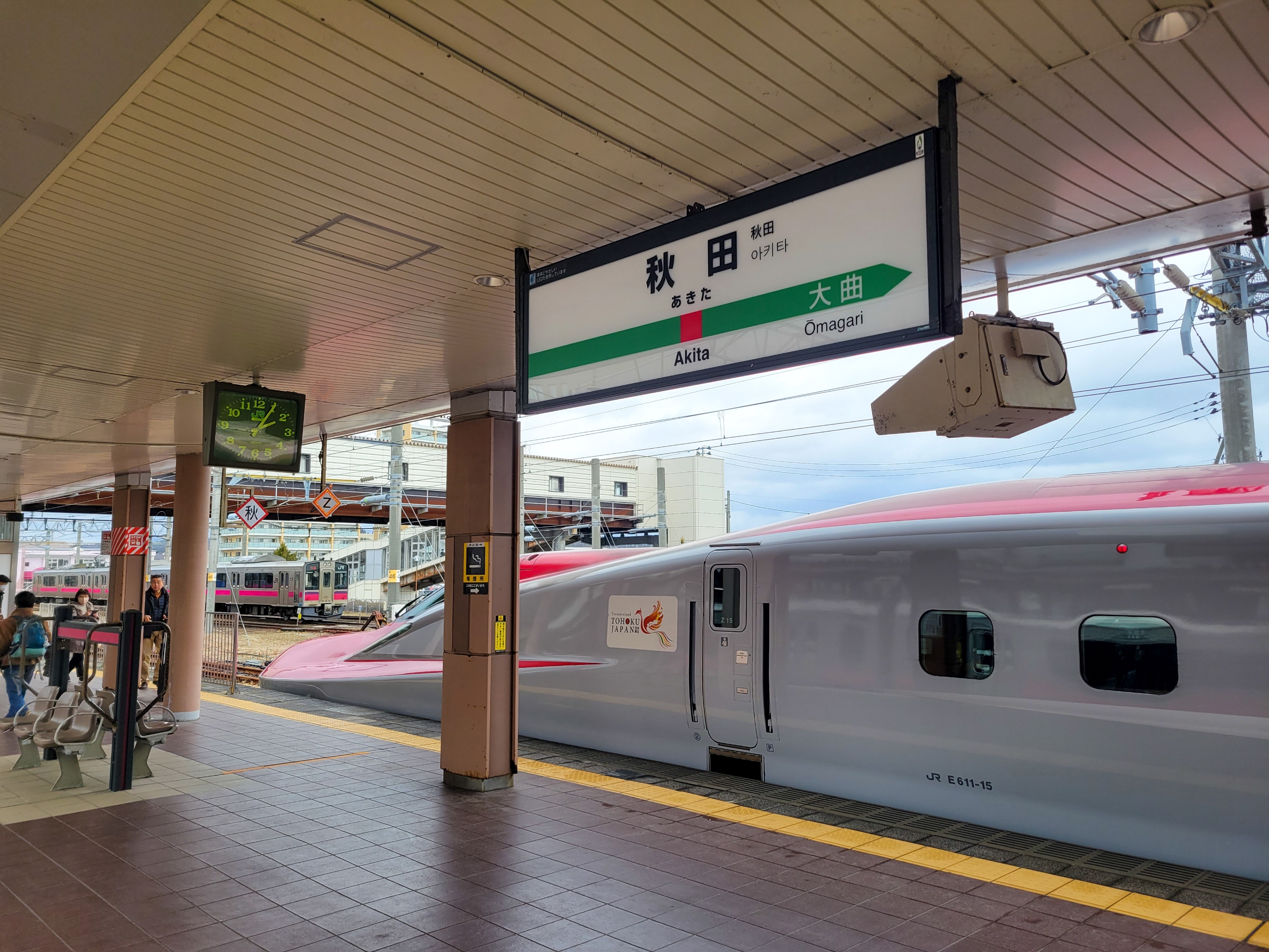 角館駅では写真撮ってなかったのですが、ここからも乗車する人が結構いました。秋田市周辺は観光するところないので、小京都の角館を観光する人が多いのかも。