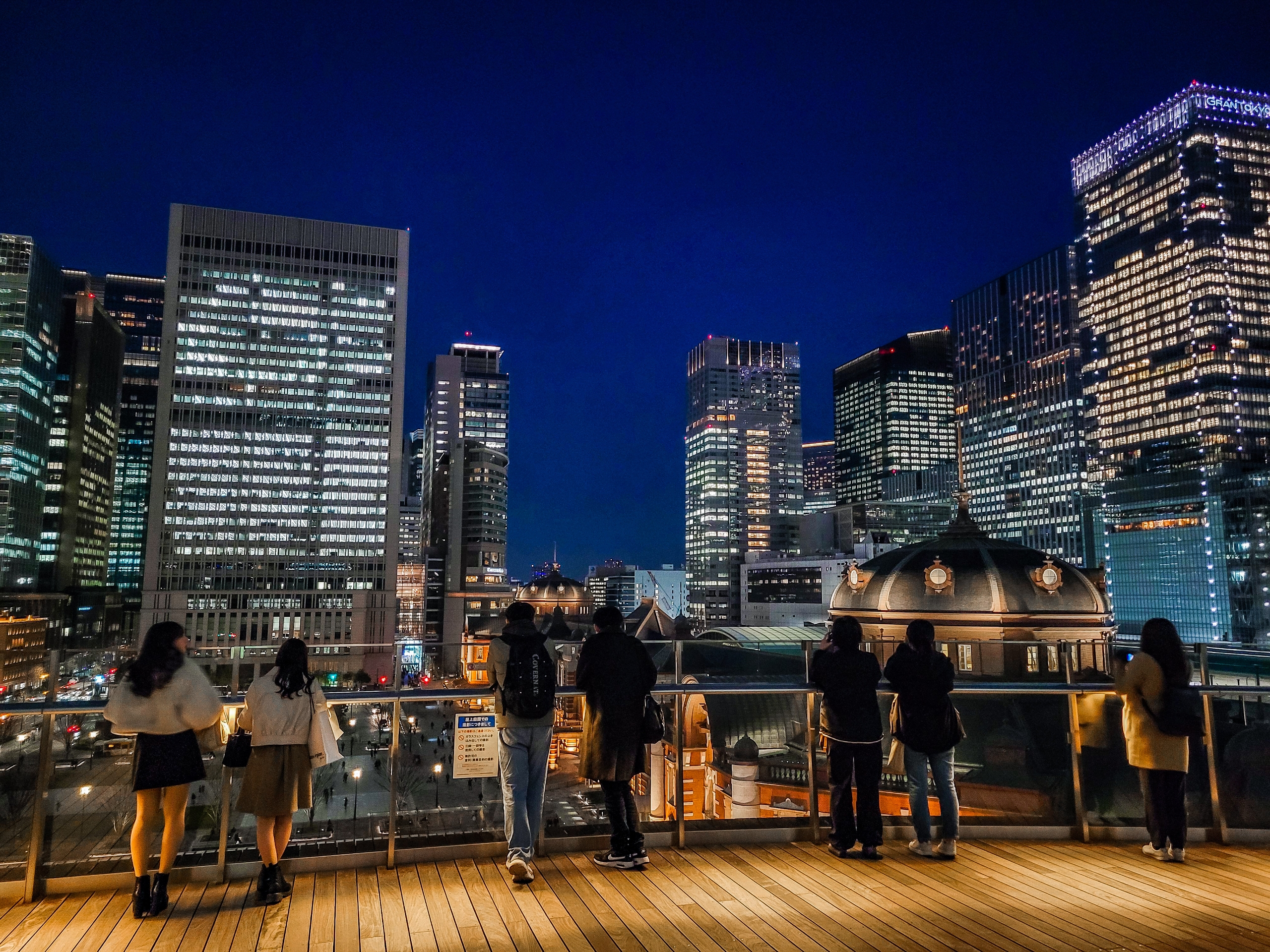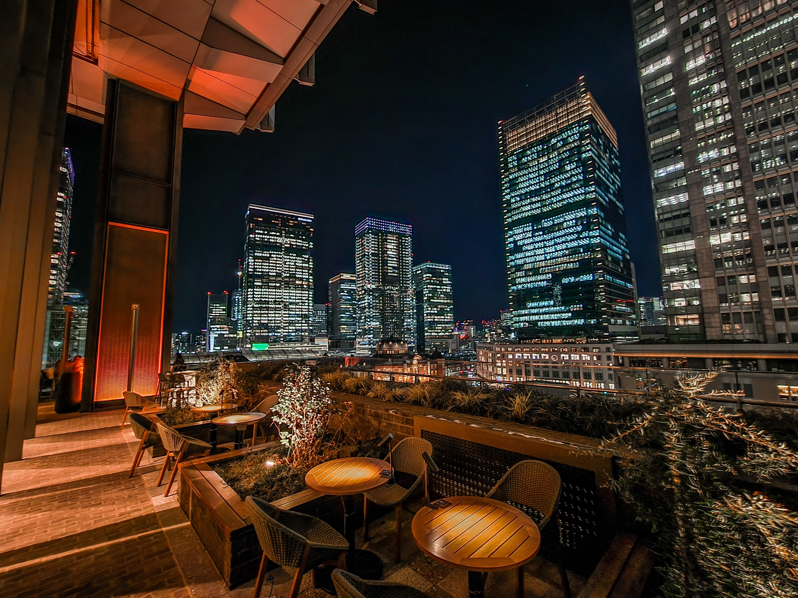 左は東京駅、右が先程訪れていたKITTE。八重洲側のビル群が借景になってて、ここからの夜景もいいですね。