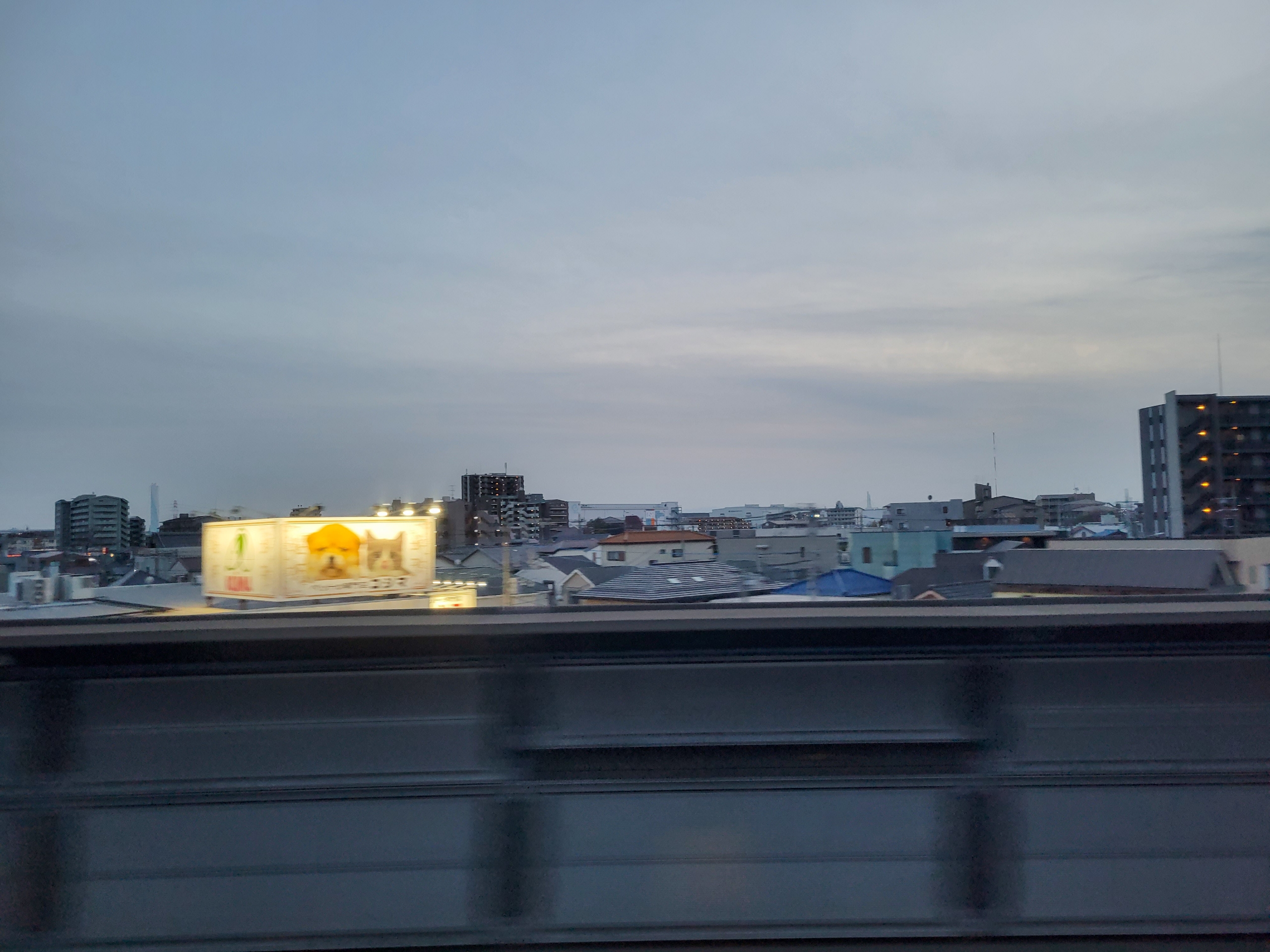 大宮駅からは110km/h運転。ゆっくり走るのですが、この犬と猫の看板がよく目につきました。