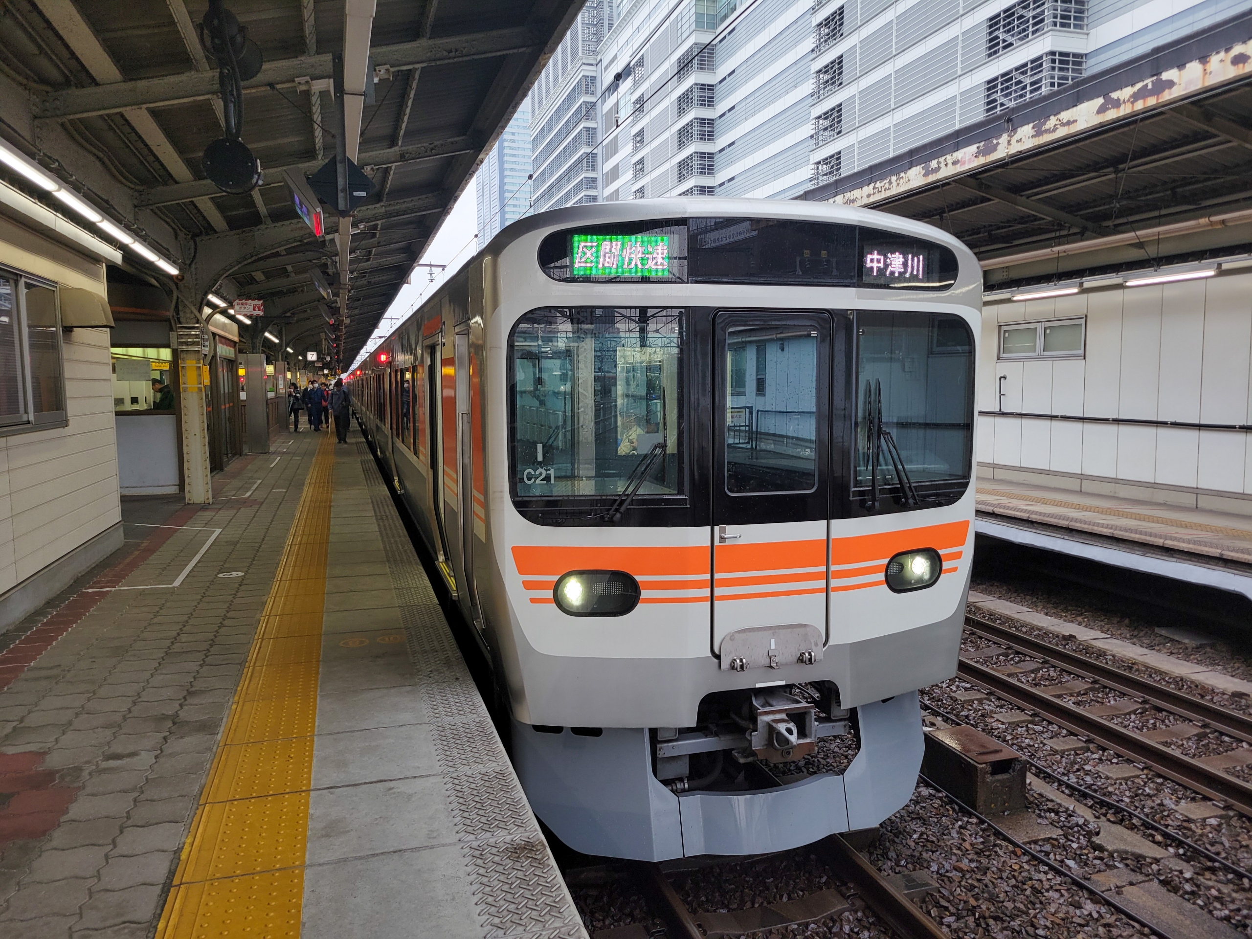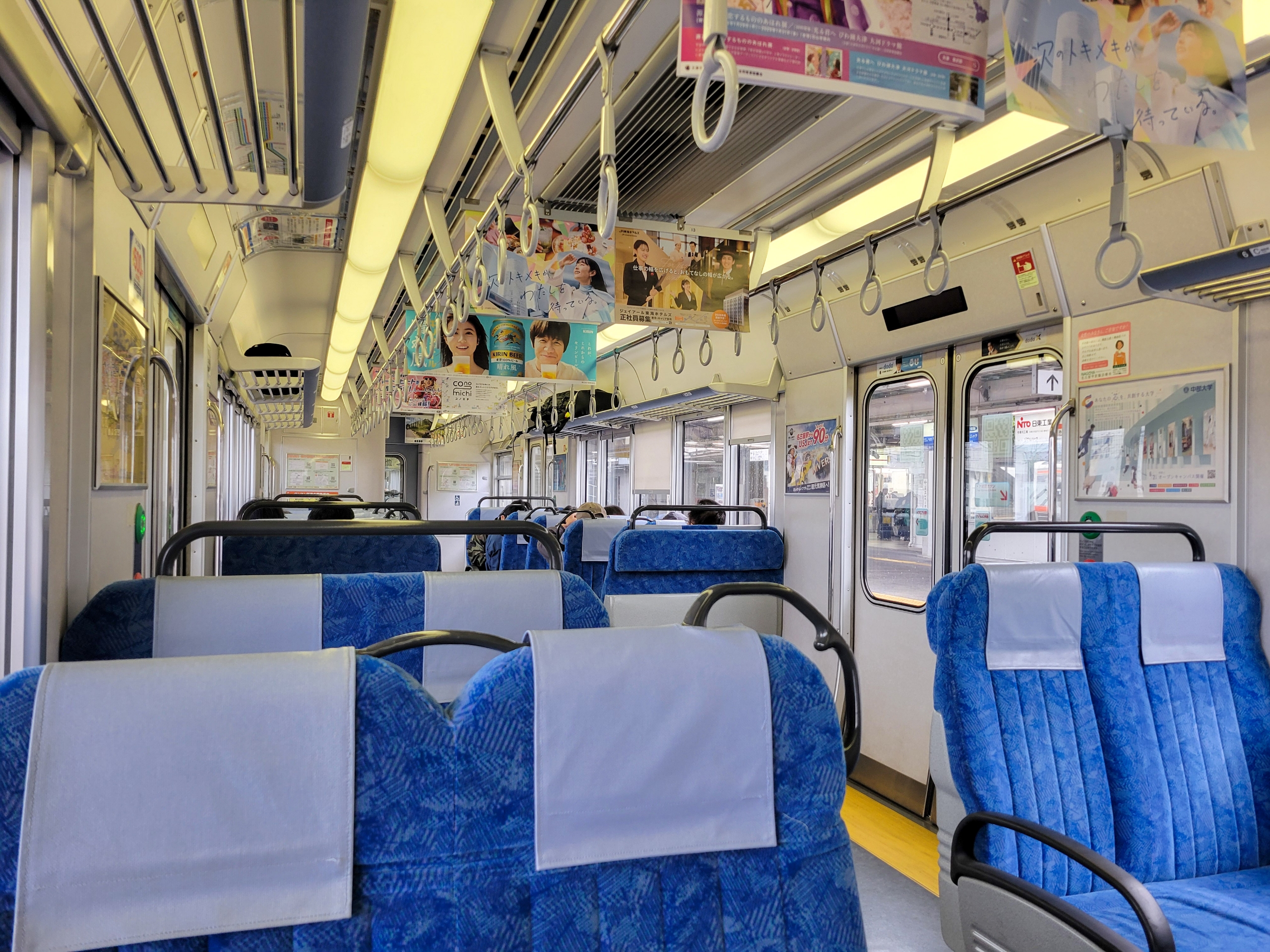 この時間帯は名古屋まで直通しないし、車両は4両と短めなのでわりと混雑する区間。