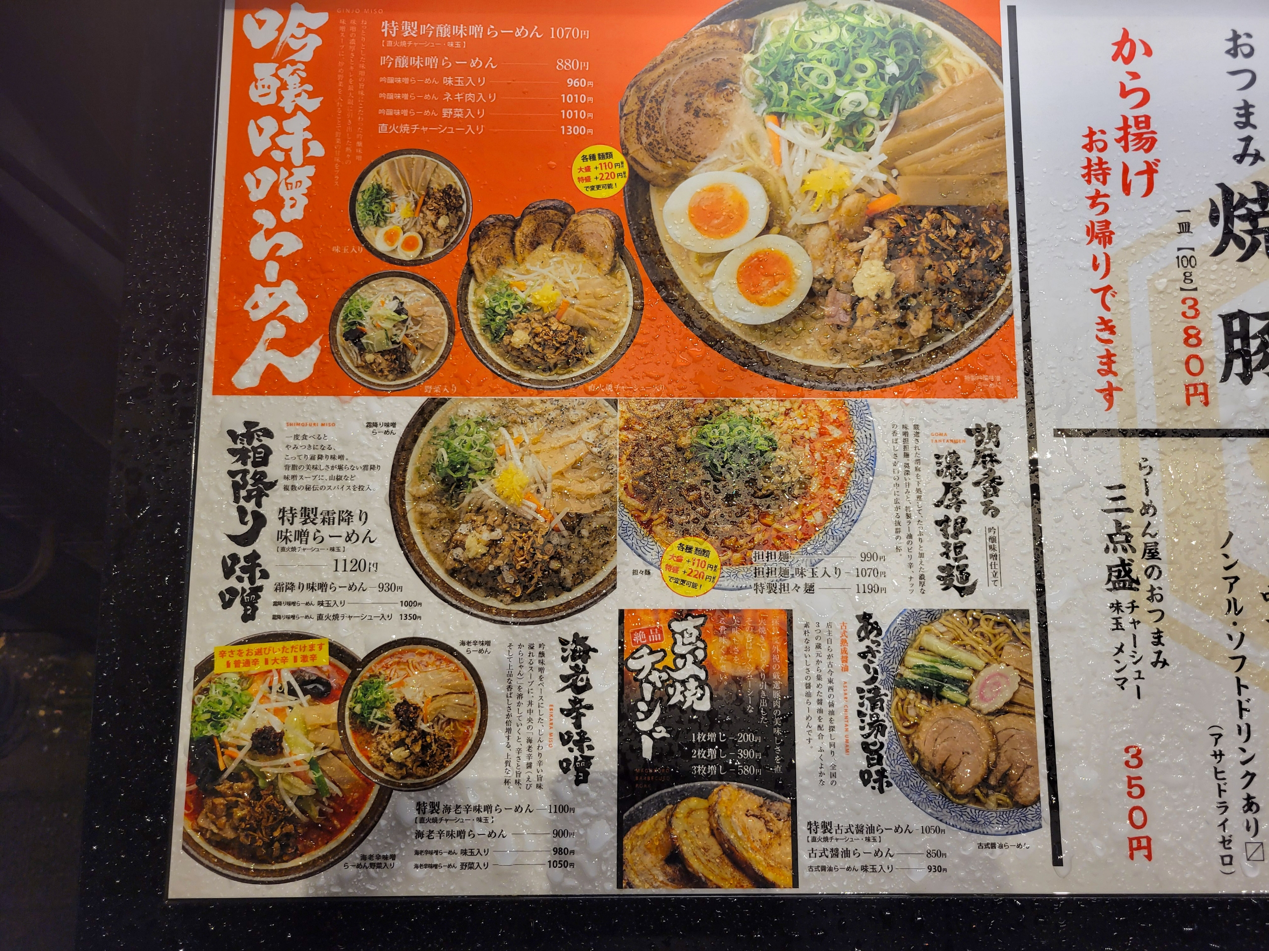 一番オーソドックスな吟醸味噌らーめんで800円。