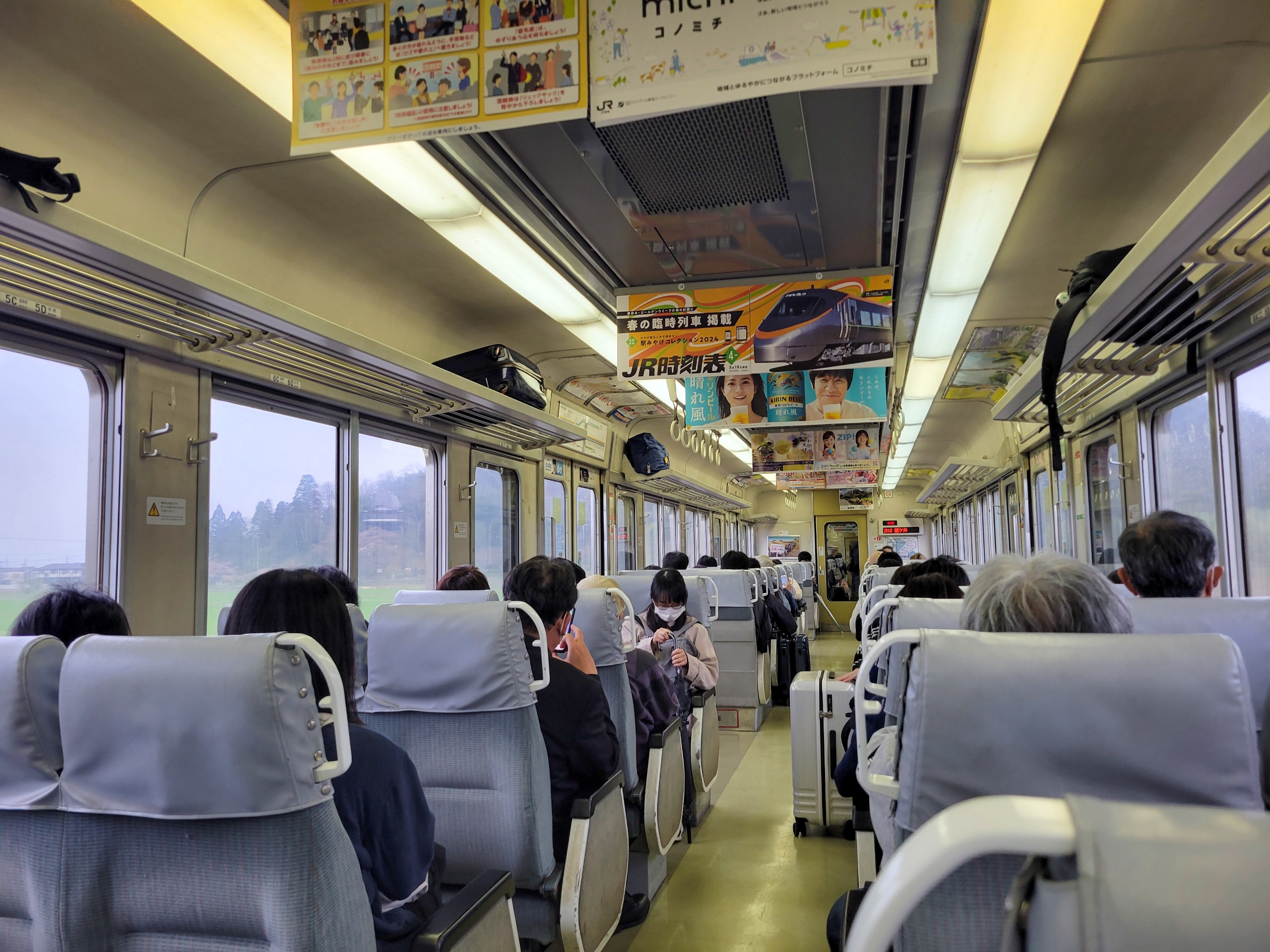 座席は選び放題かと思ったら、席取りに必死な年齢層が少なかったためで、相席であれば座れるという程度の乗車率で中津川駅を12時に出発。