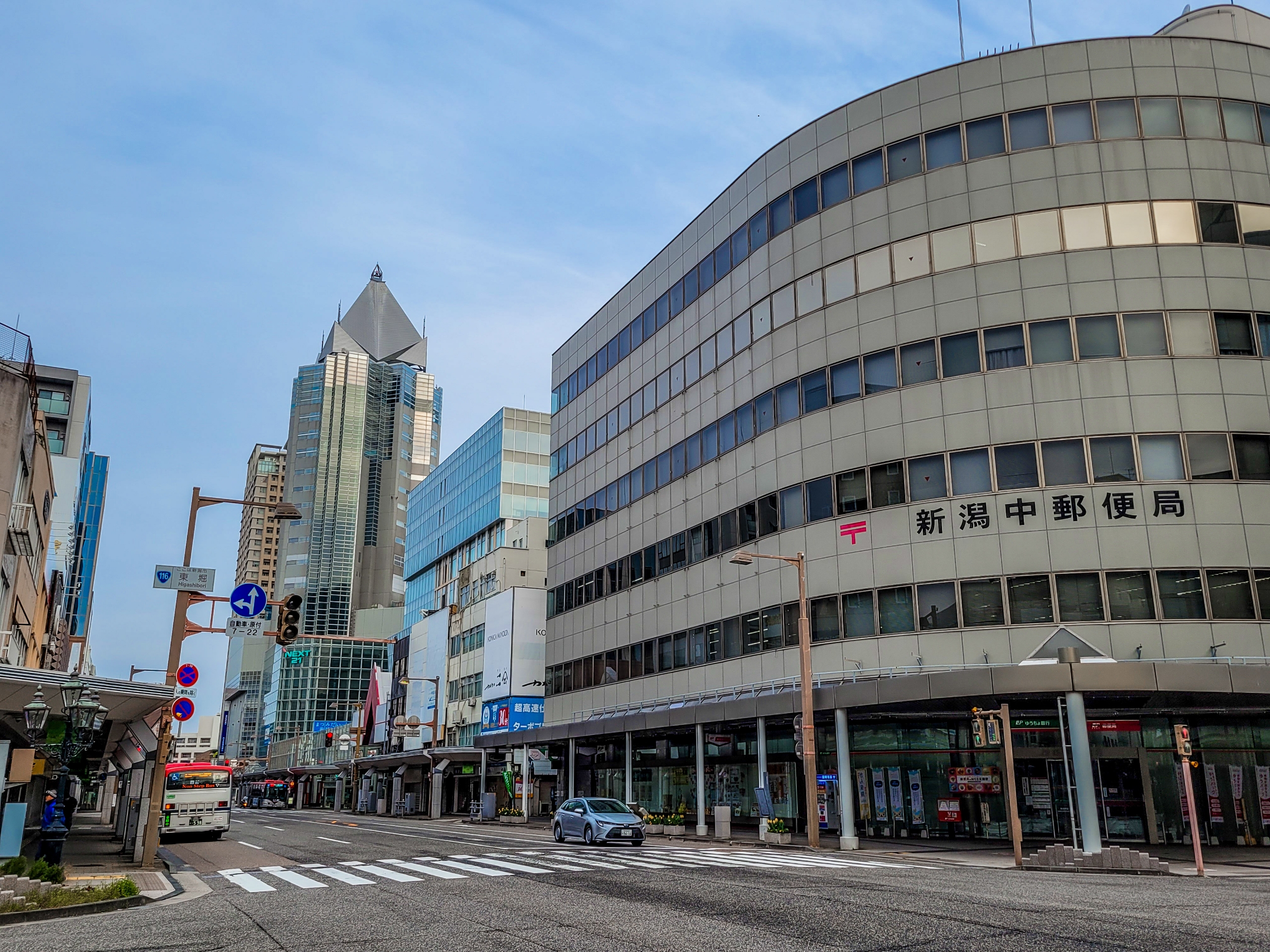 コーヒー片手に朝の散歩。古町エリアの中心にある新潟中郵便局。