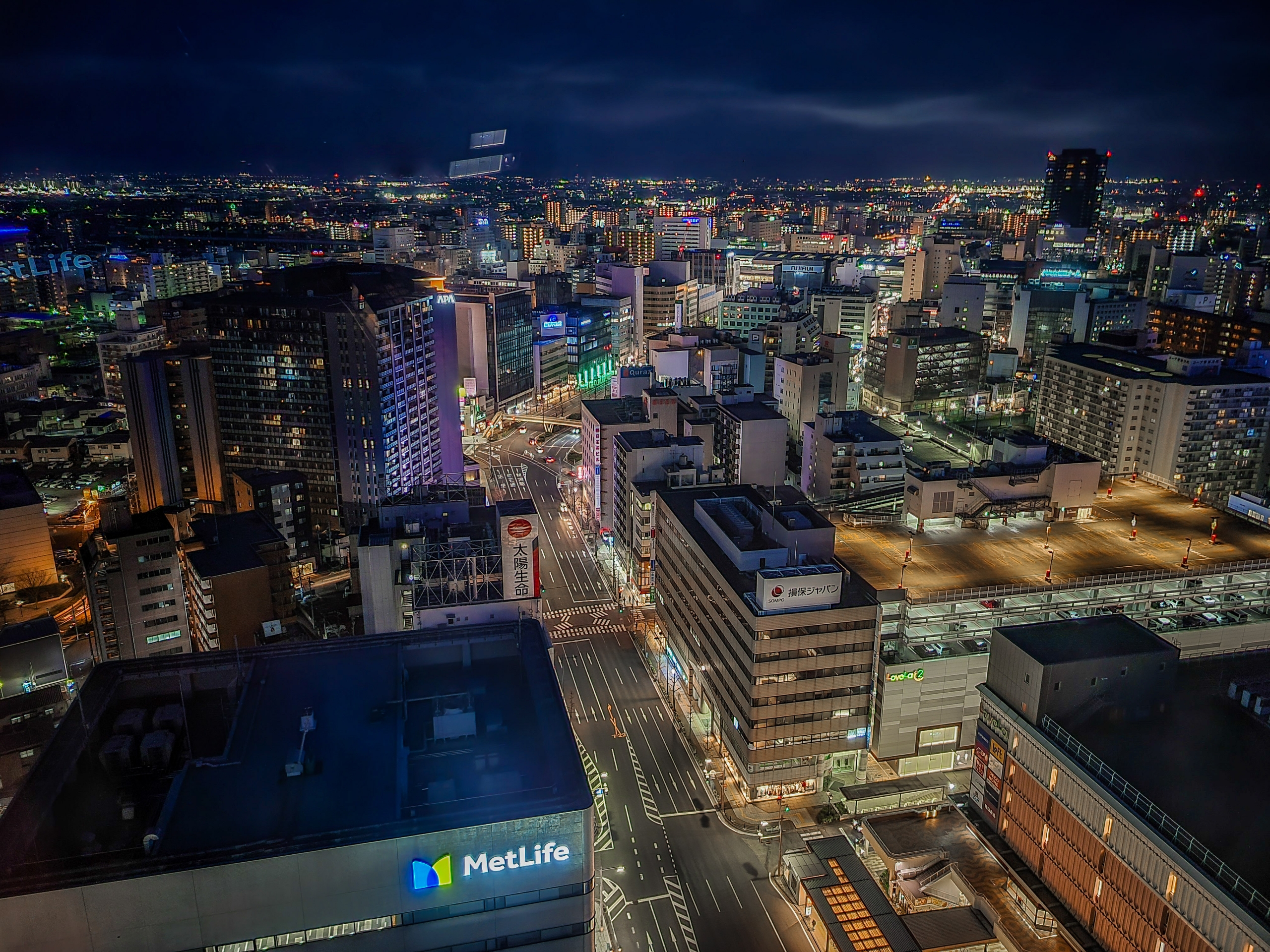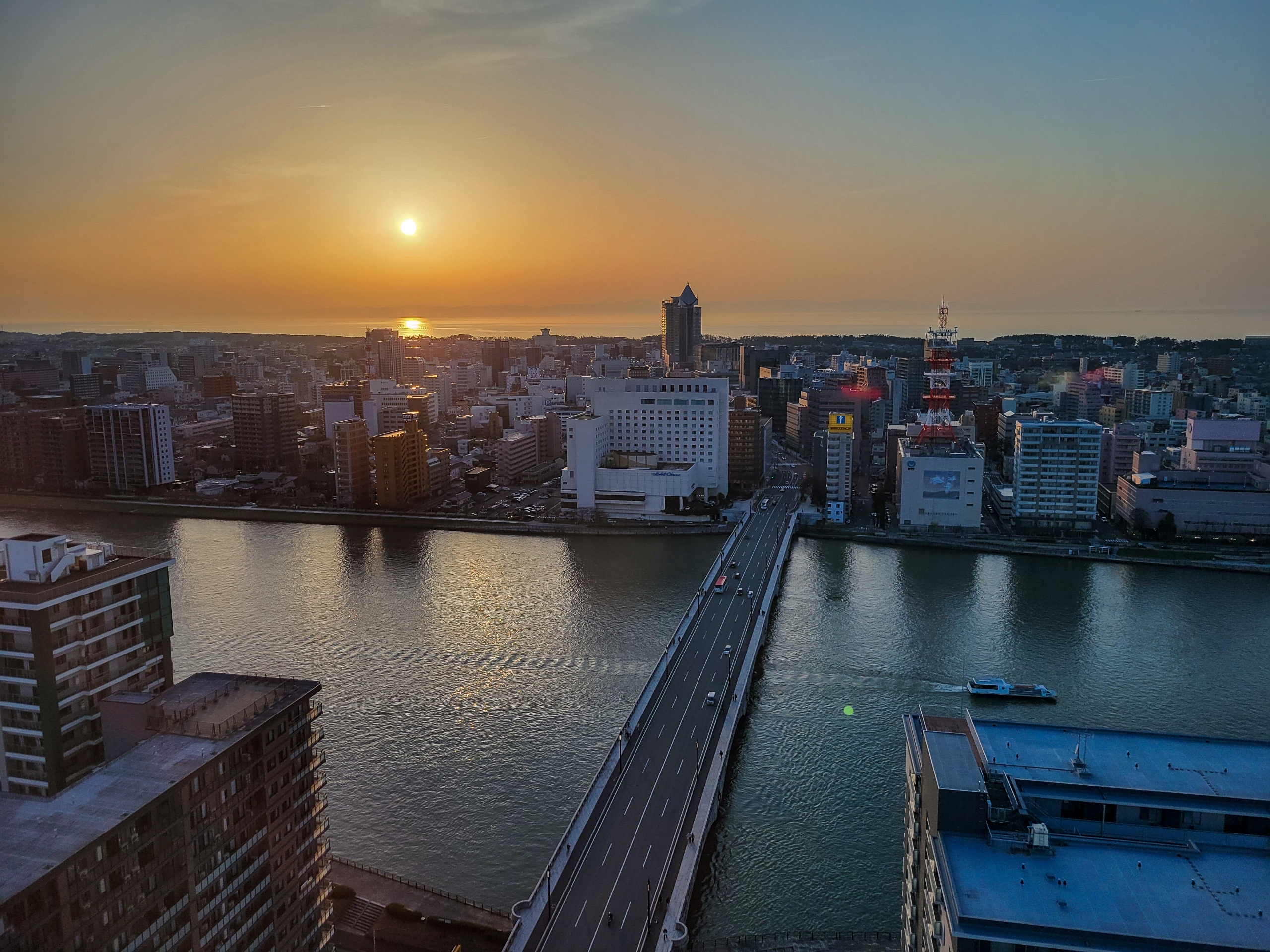 徐々に街の灯りがくっきりしてきました。Galaxyのカメラは強い光に弱いので、このぐらいの時間帯がちょうど良いみたい。スマホと思えないほど綺麗にとれてる気がします。