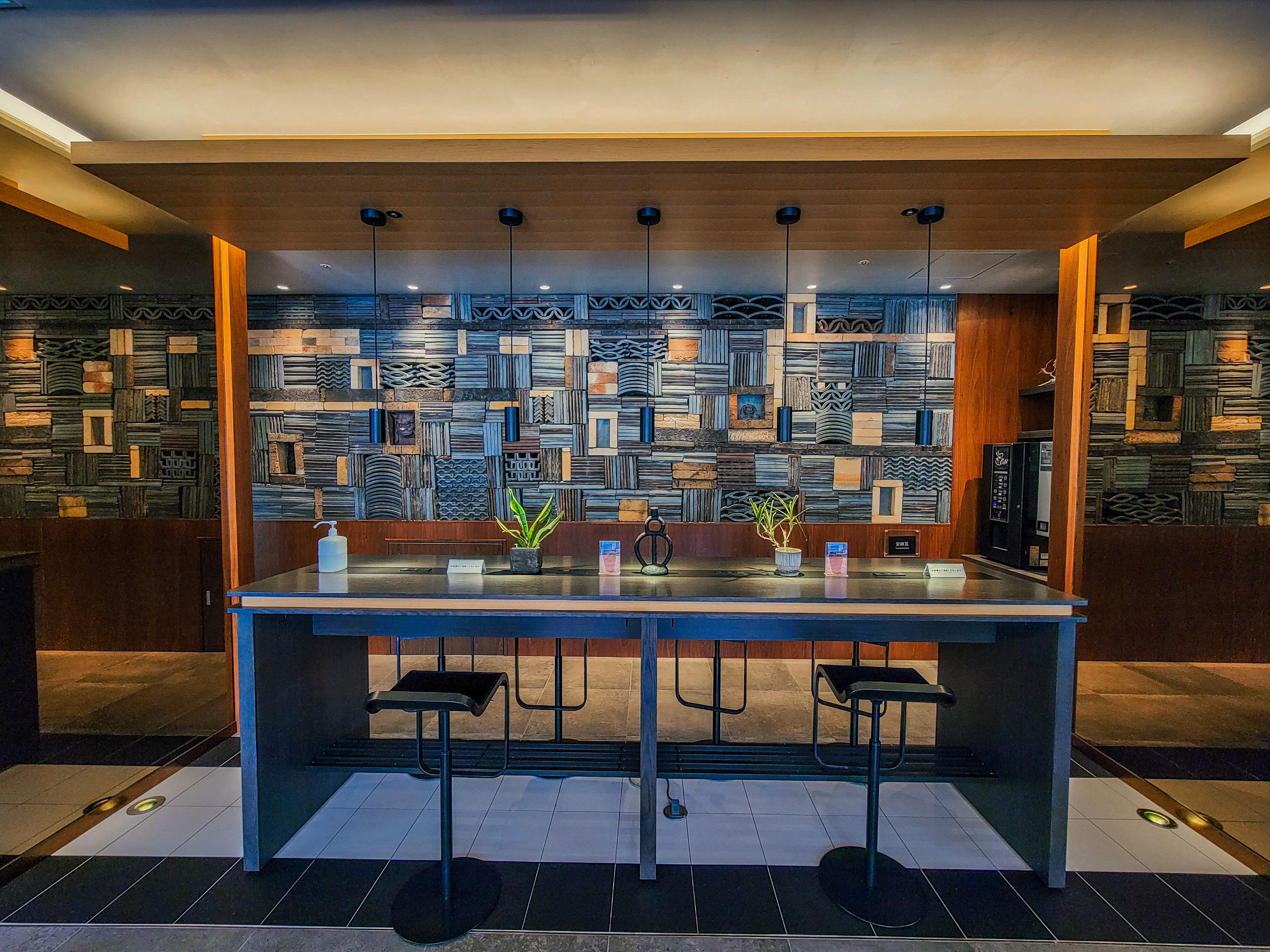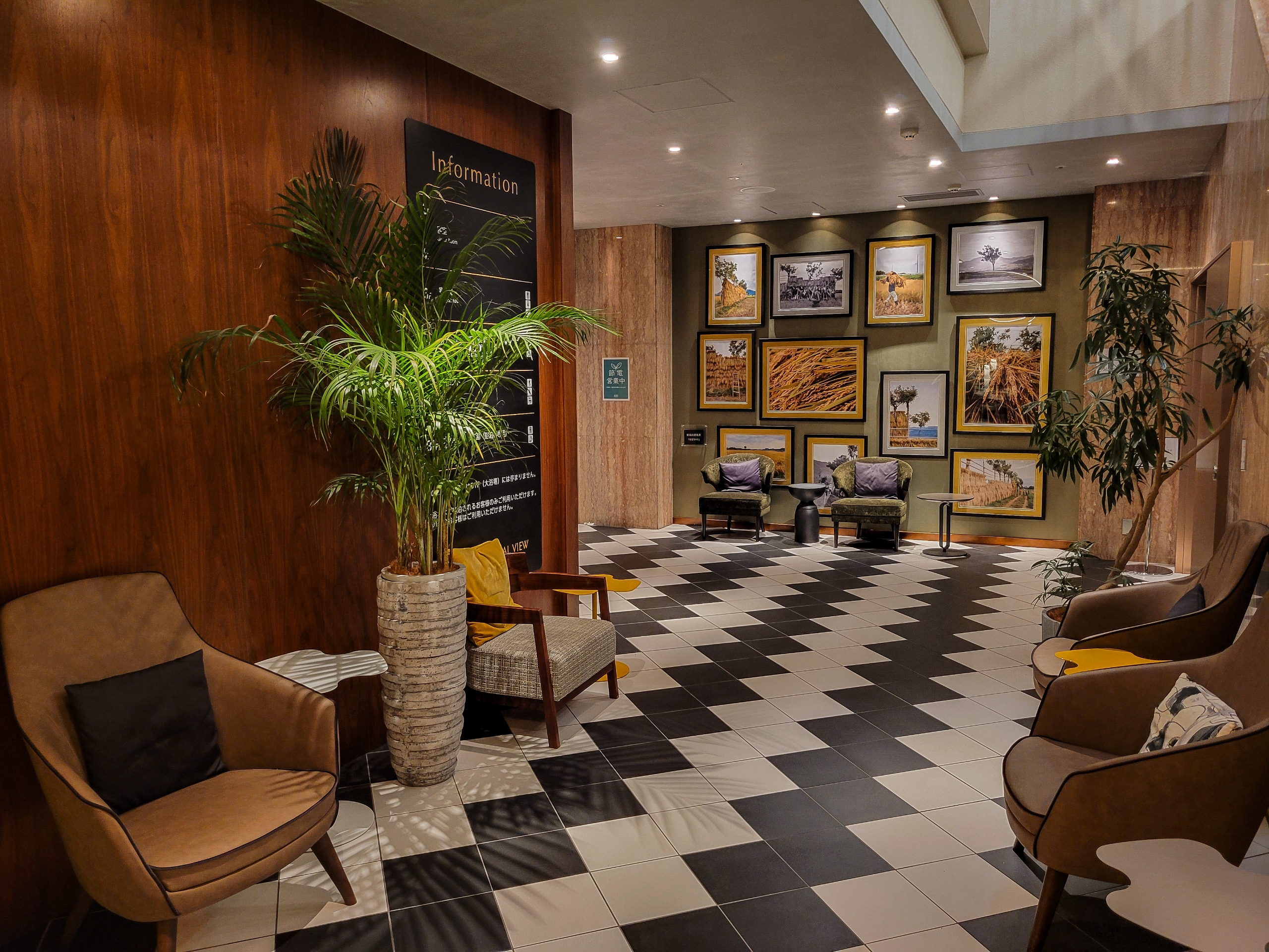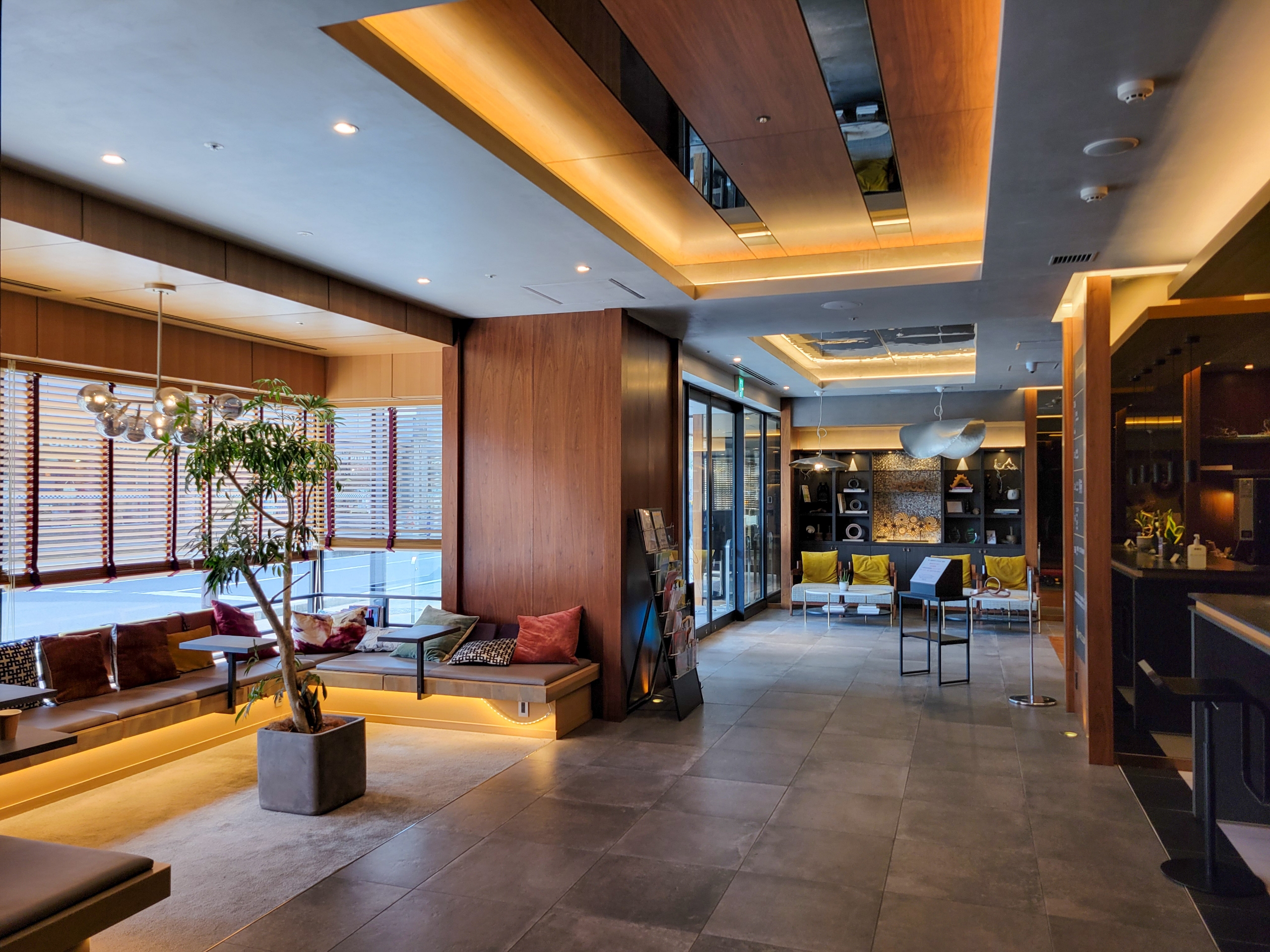 いづれもスタイリッシュでゆっくりしたいところですが、客室エレベーターへの通路も兼ねているので、あまりゆっくりできる雰囲気ではないのが残念。