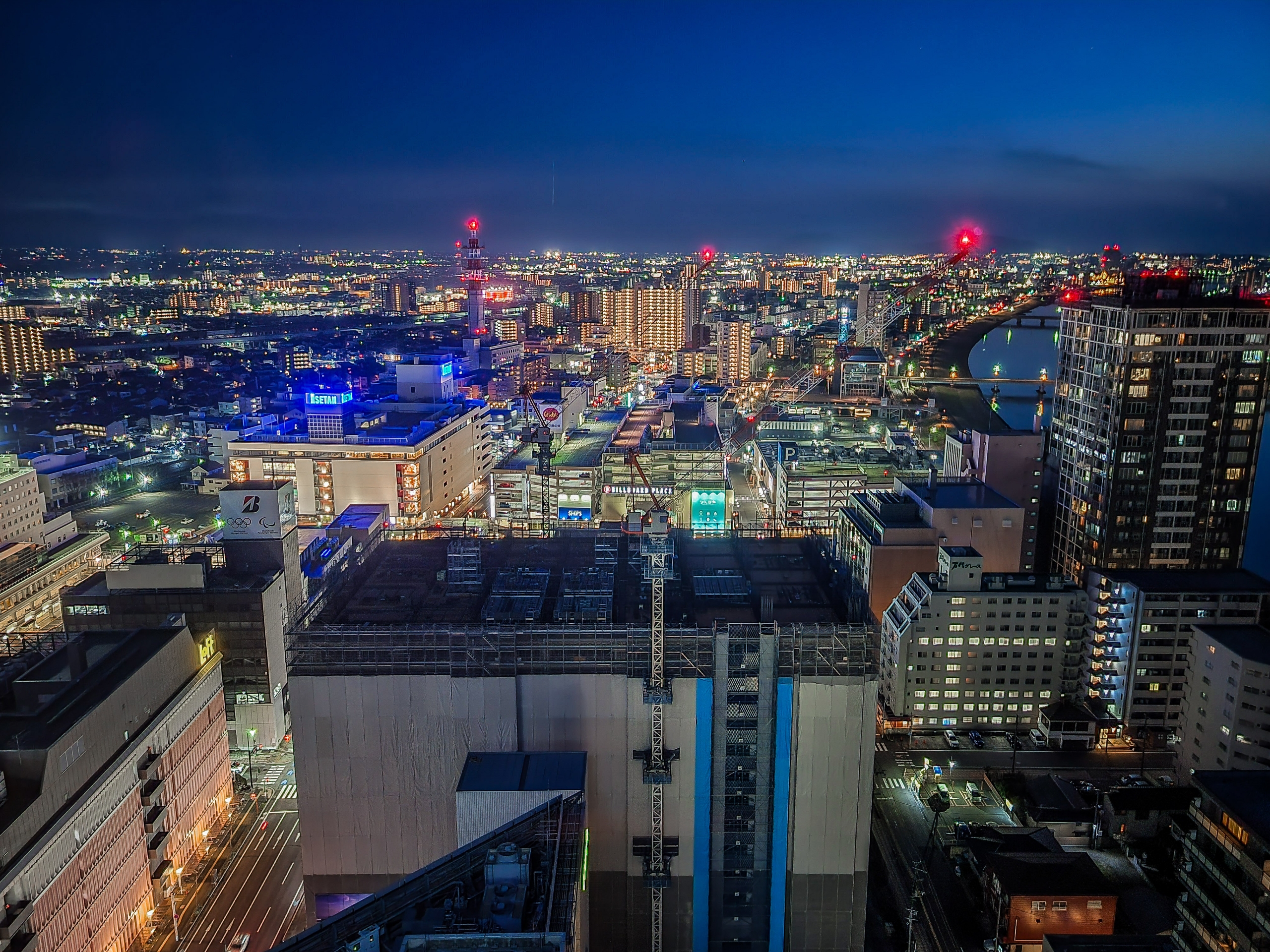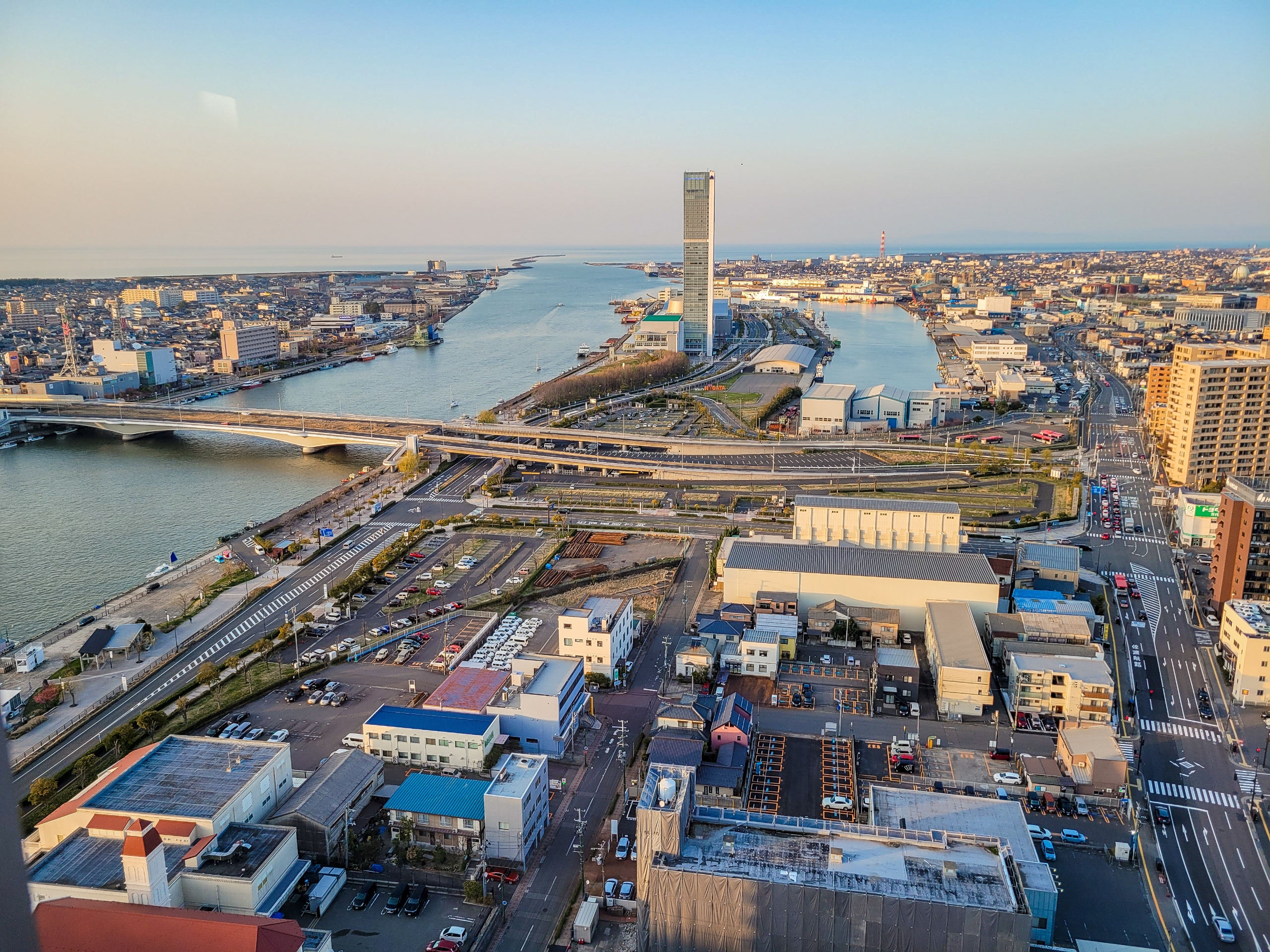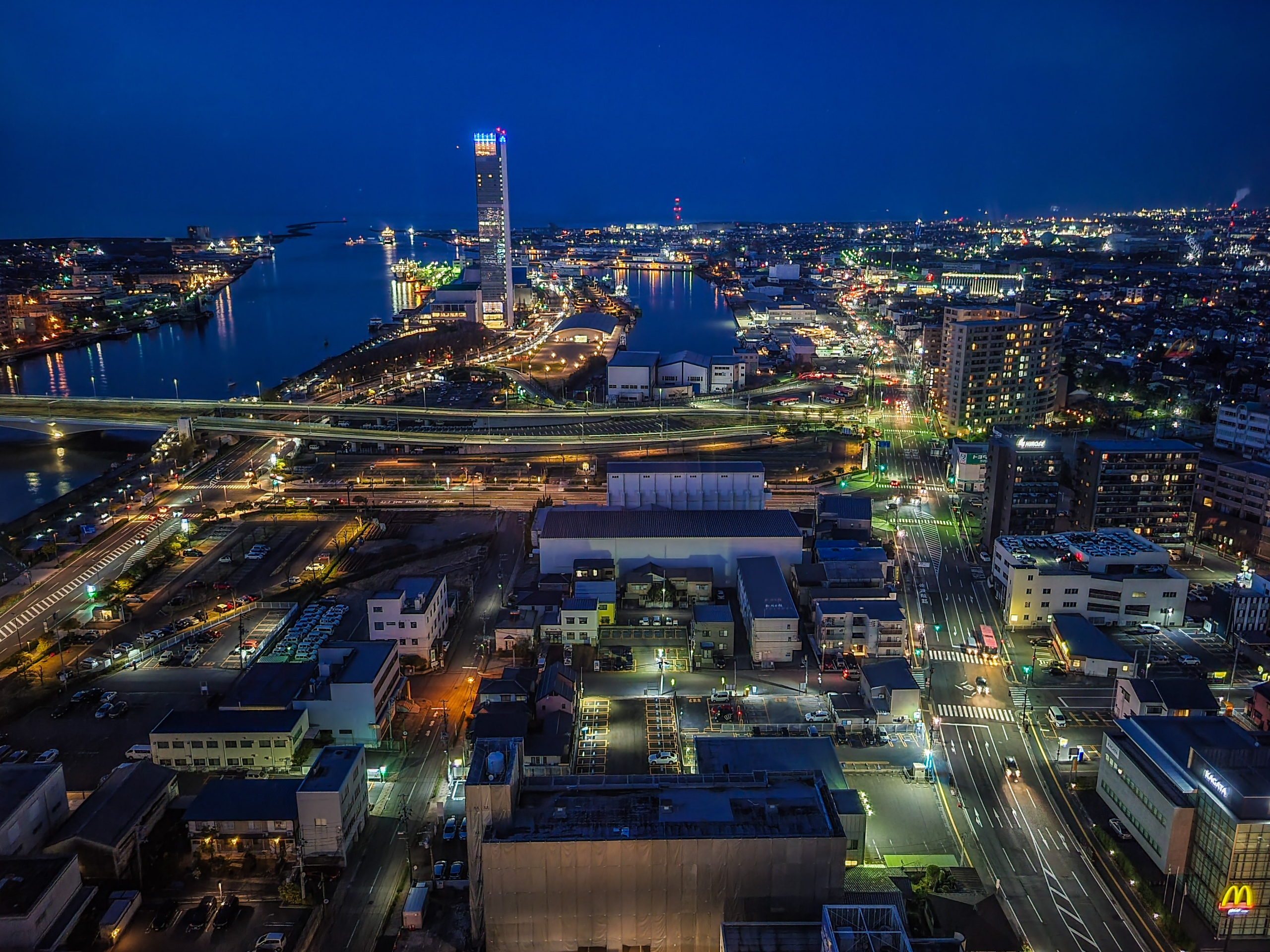 灯りは多くないけれど、信濃川と新潟港があり、明暗差があるので夜景が綺麗に見えます。
