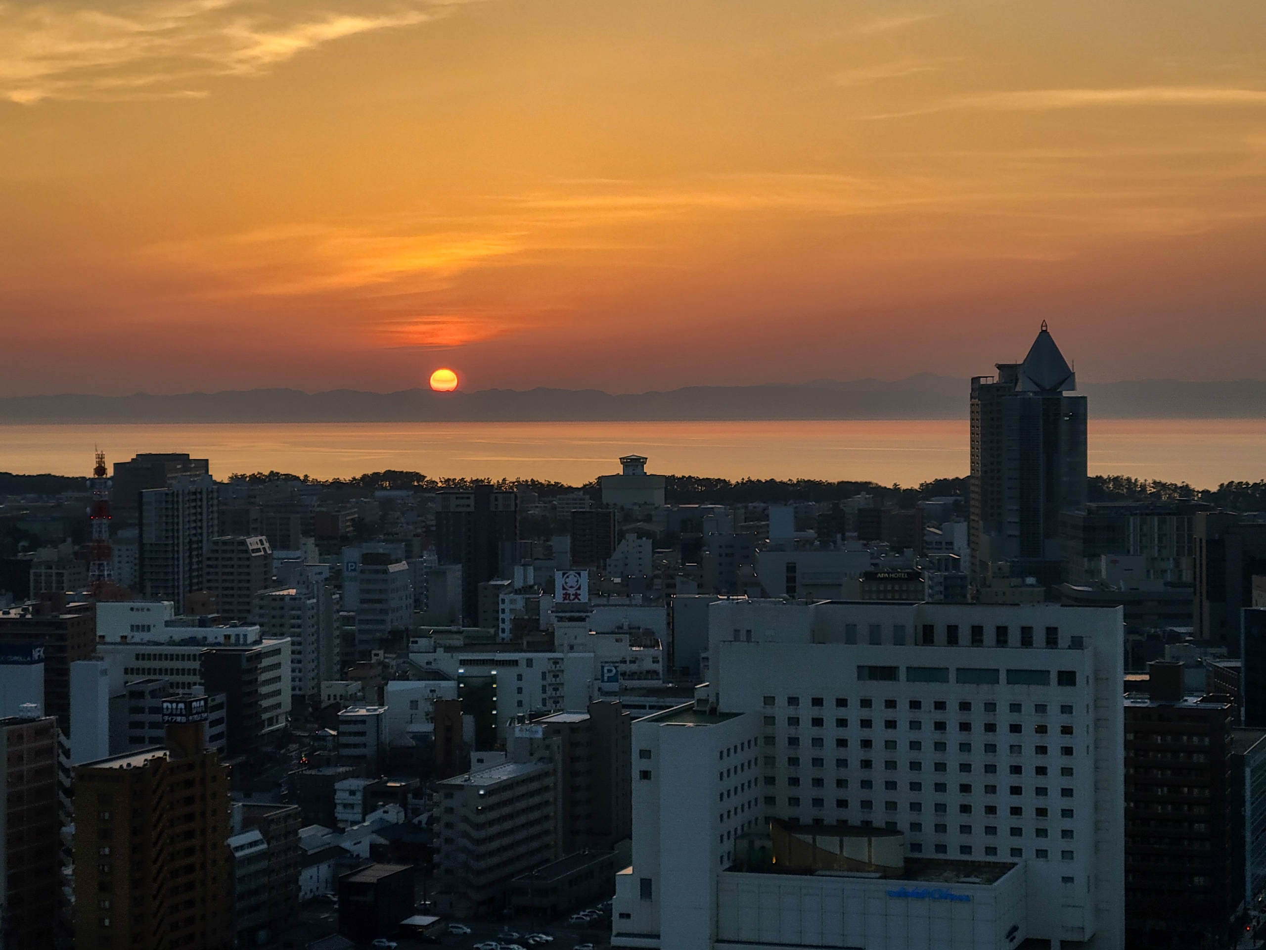佐渡ヶ島に沈む夕陽が最後までよく見えました。