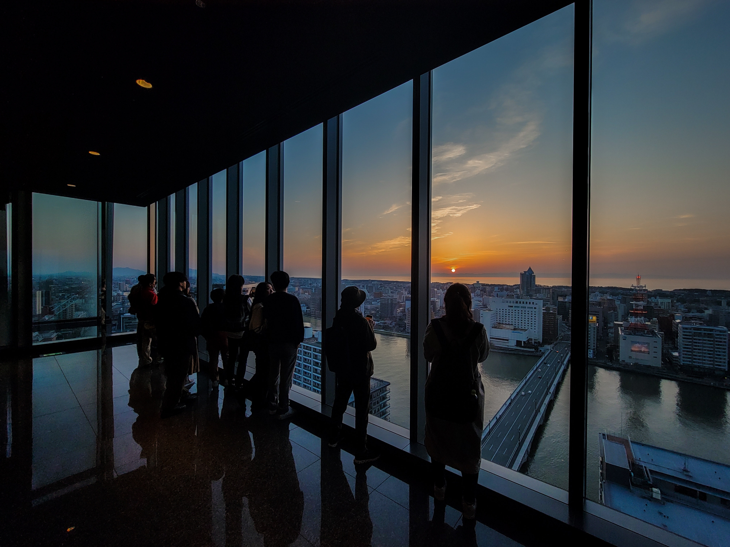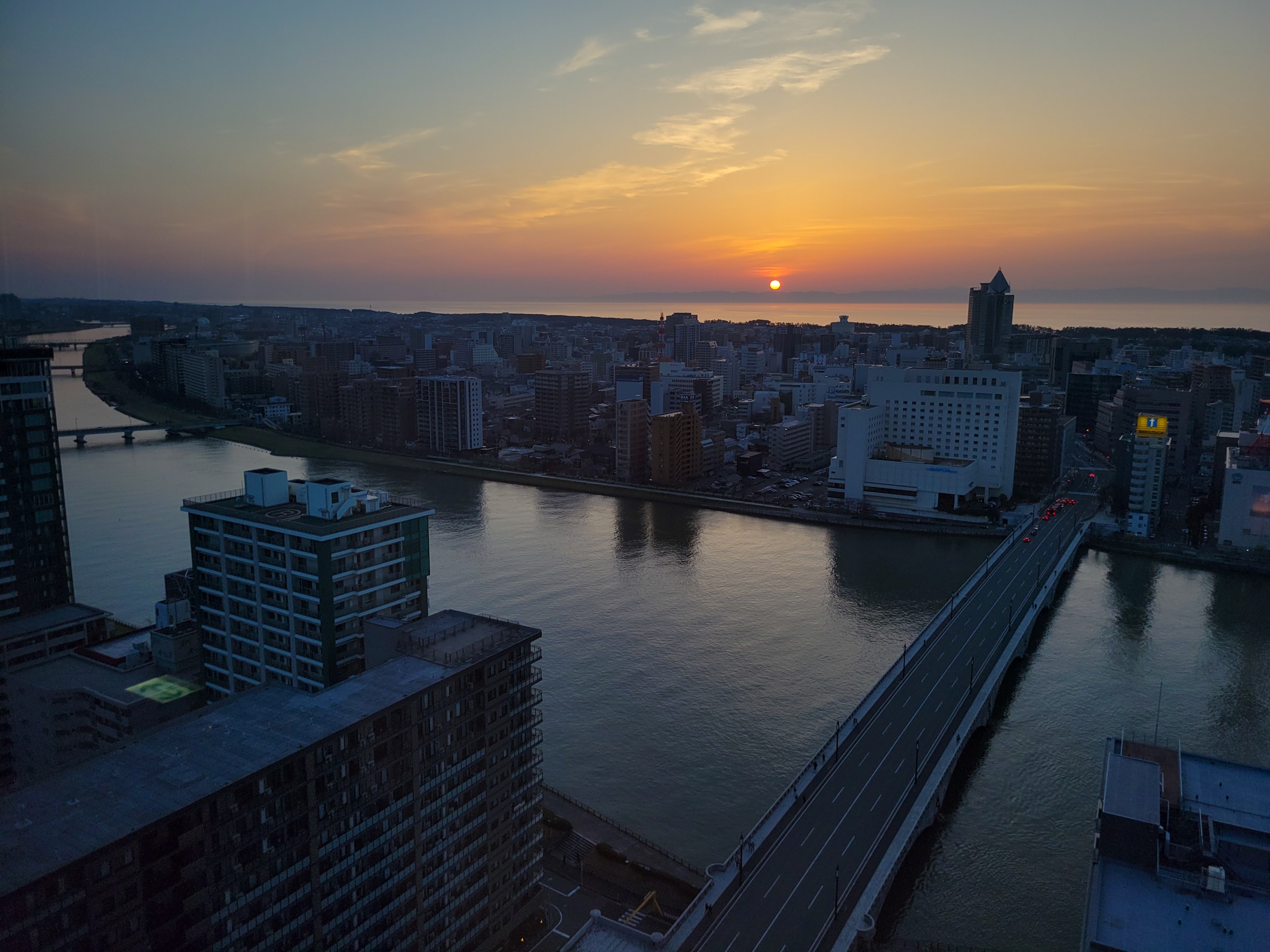 新潟日報メディアシップに夕陽を見に行くことにします。